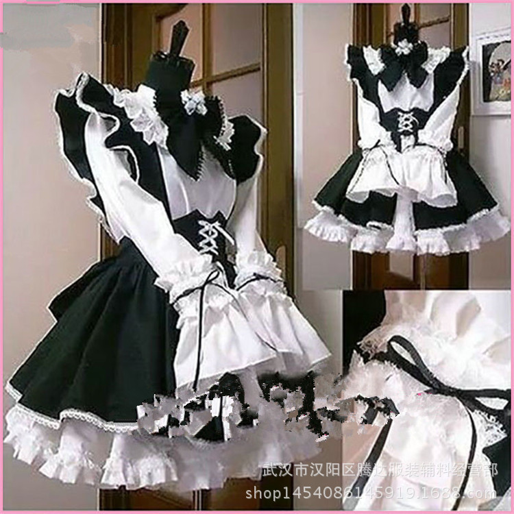 白黒メイド服 レストラン カフェ 作業服 ロングスカート メイドコスチューム 日本アニメ風