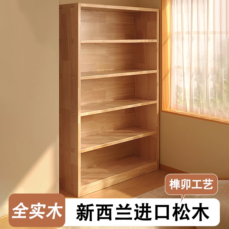 实木书架落地置物架一体靠墙学生儿童家用柜子图书馆书柜储物柜子