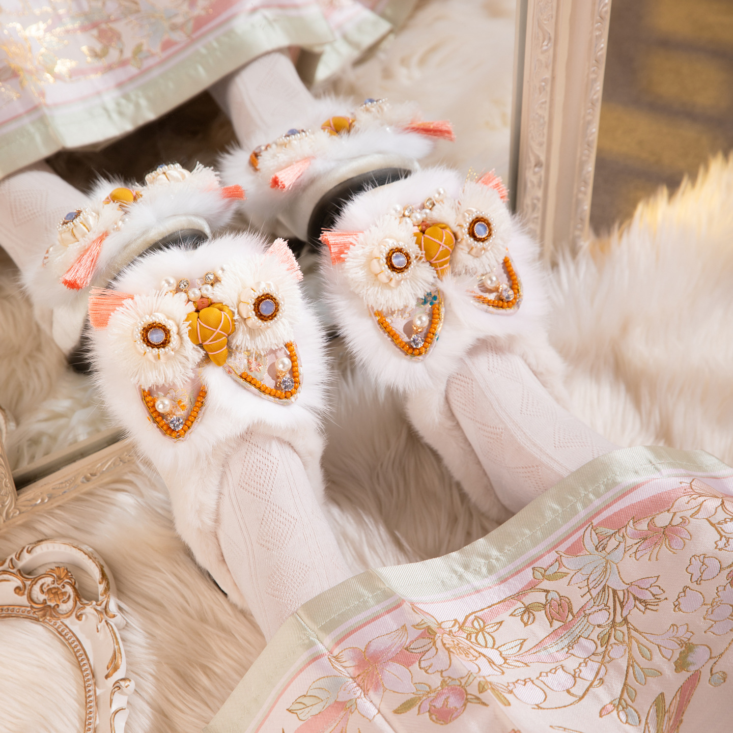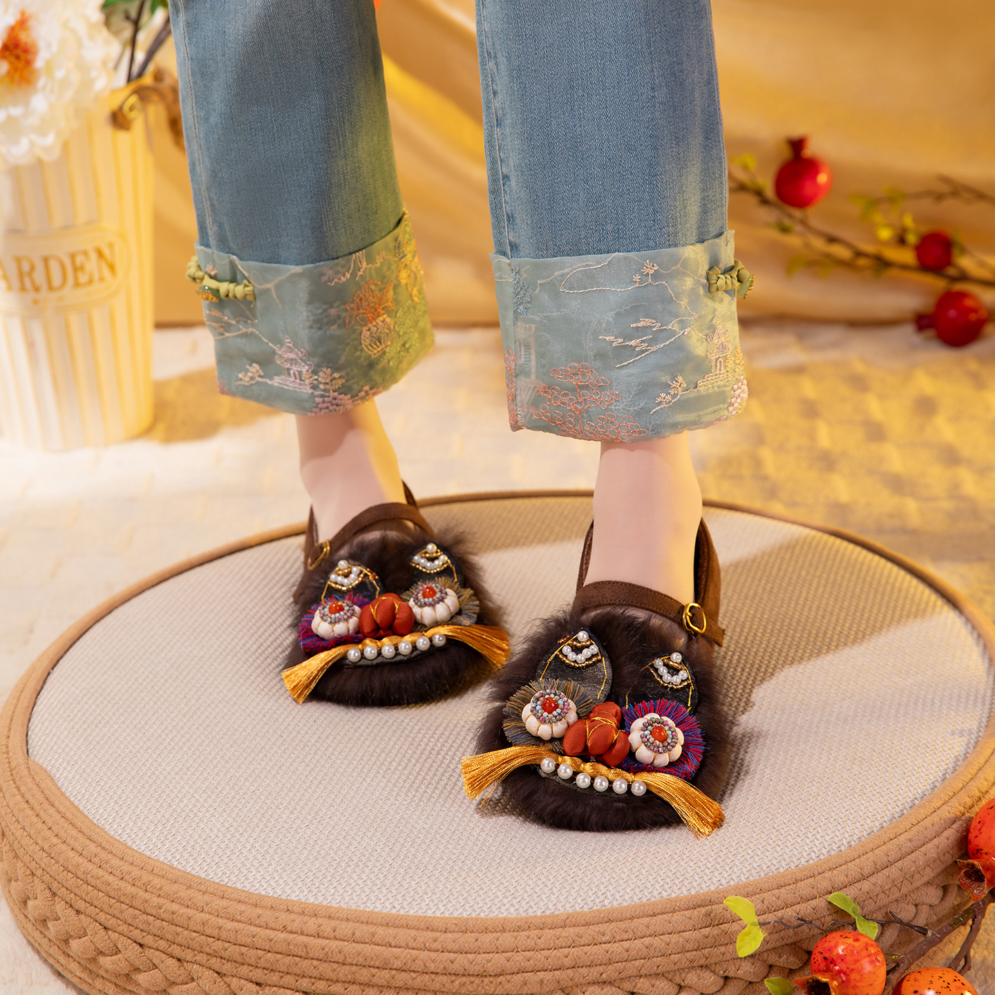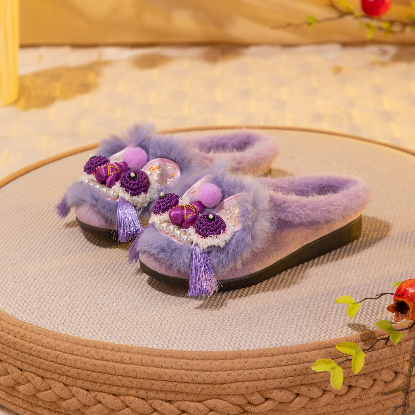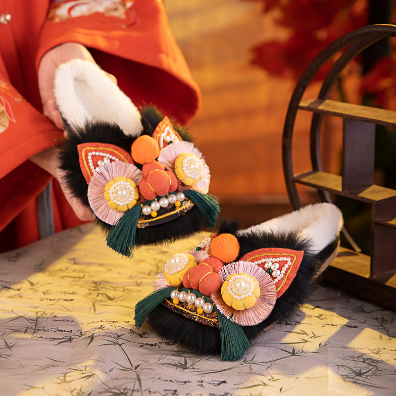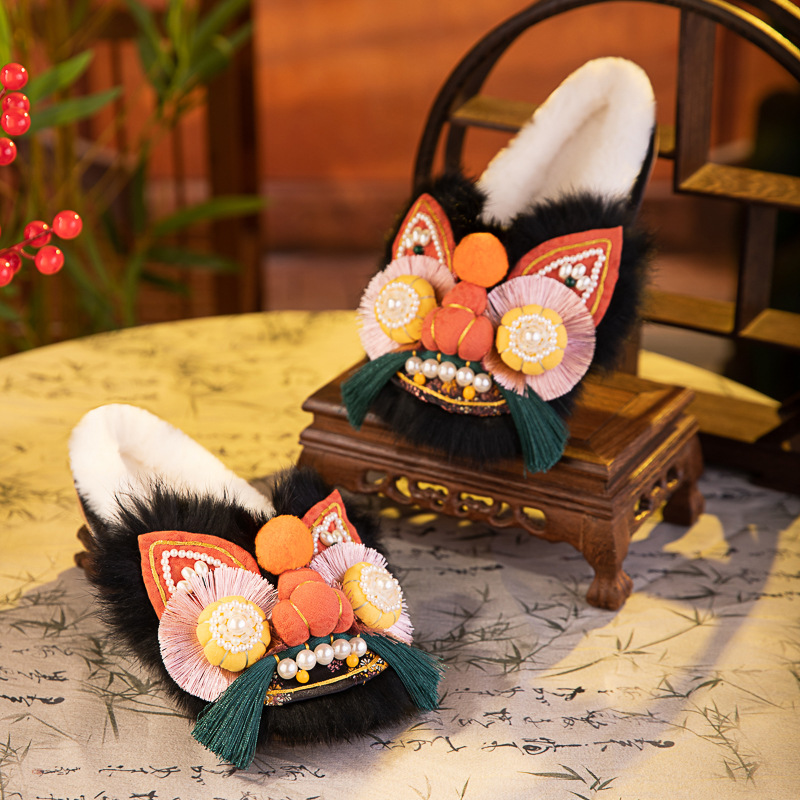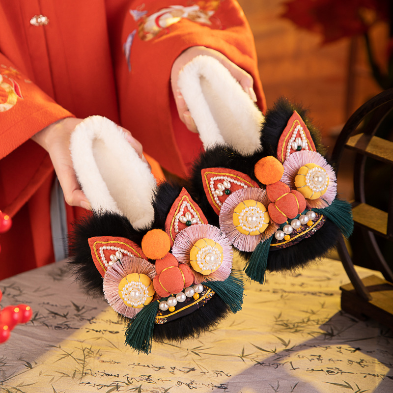 觅棠1号棉拖2025冬新款非遗手工虎头鞋兔毛平底舒适棉鞋中式绣花