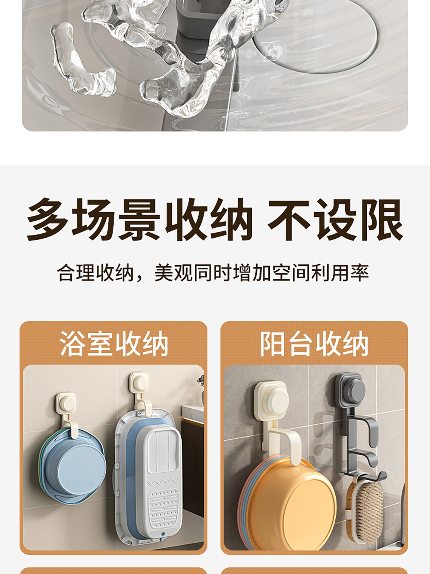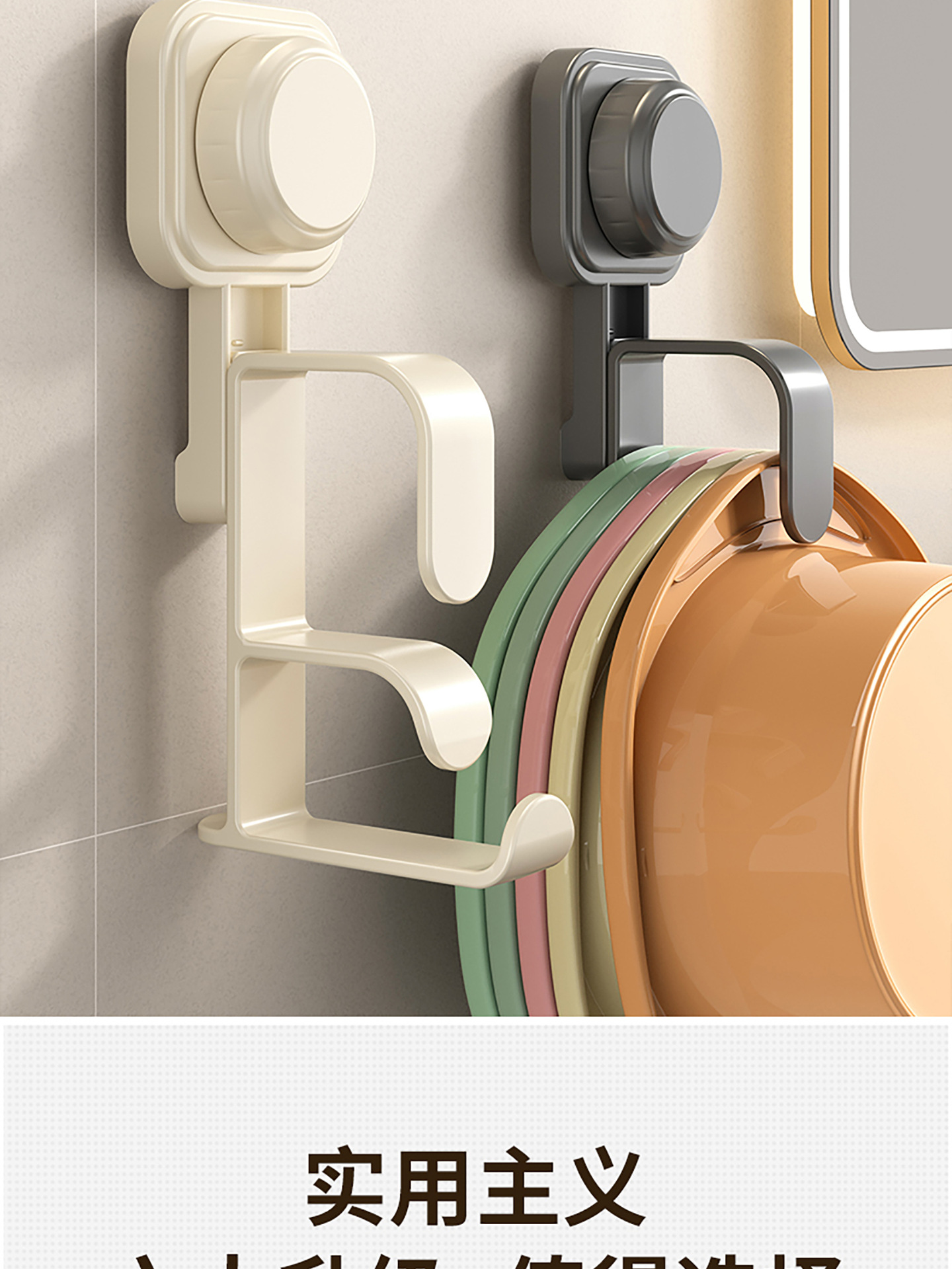 トイレ洗面器収納ハンガー浴室壁掛け式吸盤フックトイレ穴なし洗面器ラック