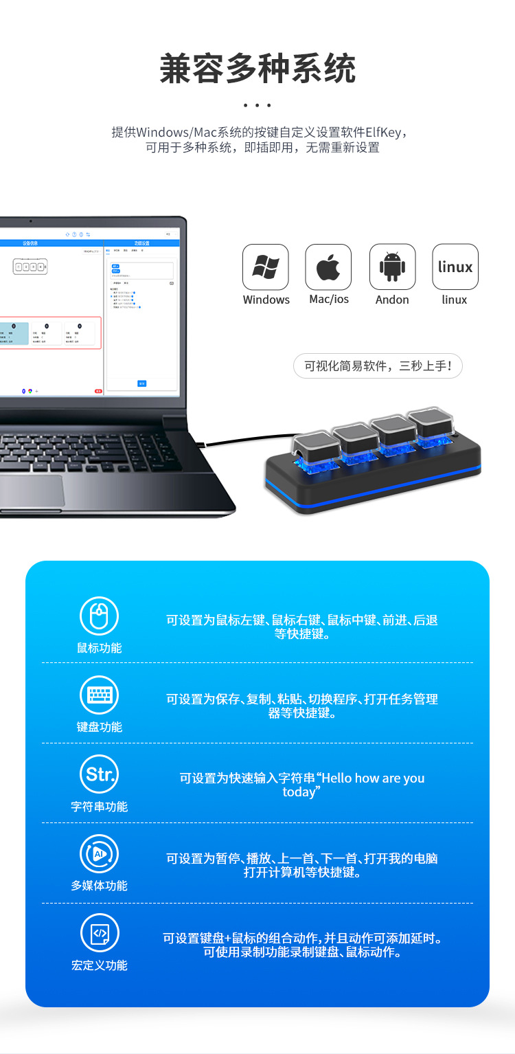 宏定义旋钮4键有线热插拔宏定义游戏机械小键盘源头厂家