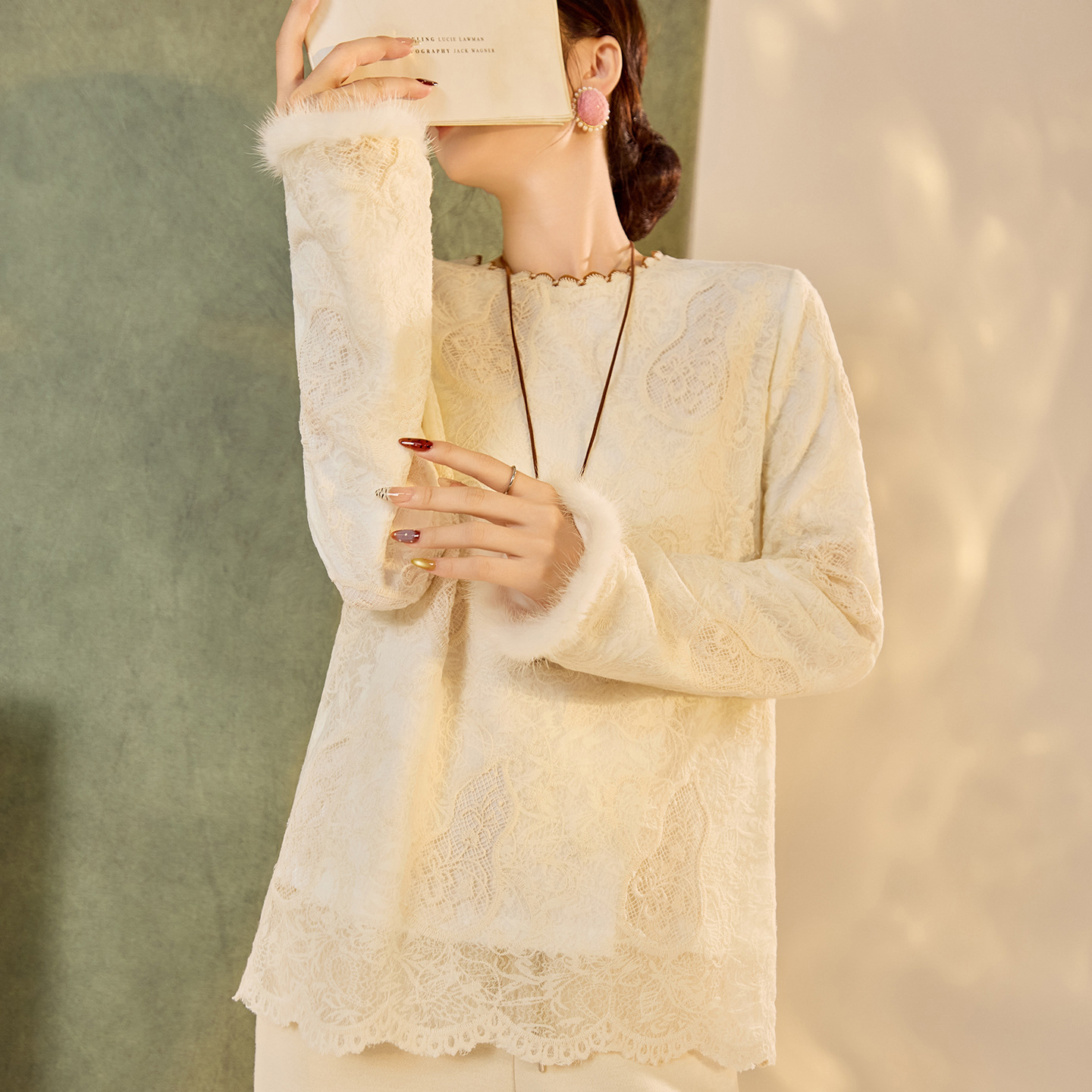 2025秋冬新款简约葫芦刺绣衬衫女国风气质显瘦百搭毛毛上衣 NX017