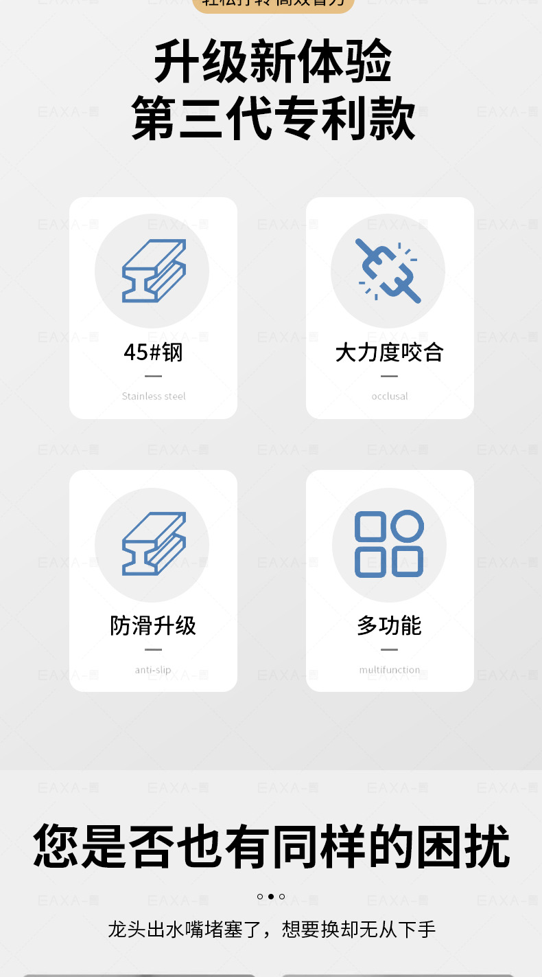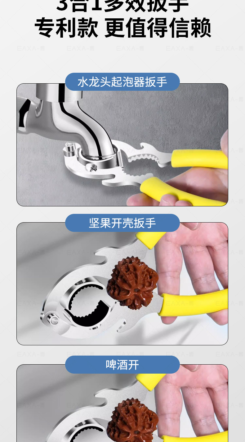 水龙头水嘴防滑起泡器拆卸家用工具卫浴拧紧金属三功能扳手家居