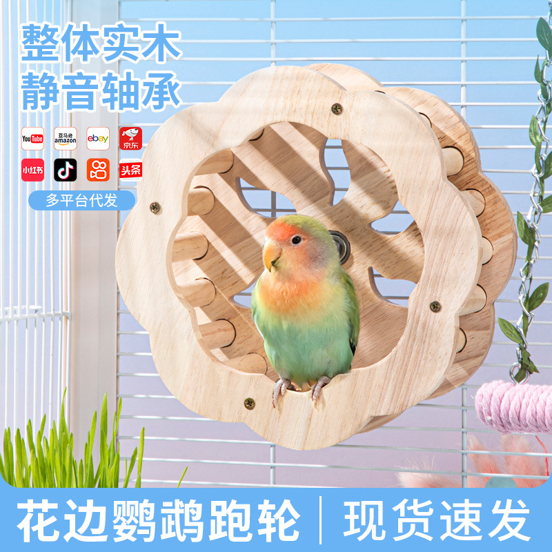 鹦鹉跑轮虎皮牡丹玄凤啃咬攀爬鸟玩具实木鸟站笼解闷益智滚轮