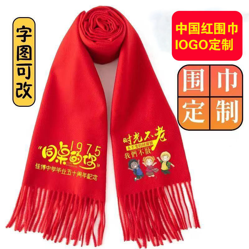 红围巾定 制公司年会开业同学聚会围脖印字活动中国红刺绣