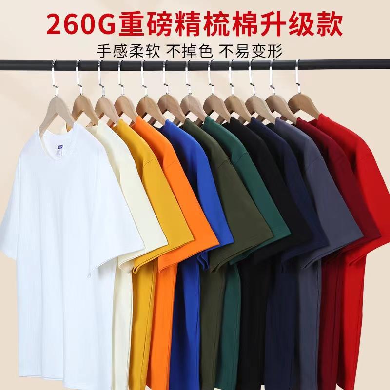 260グラムの厚い純綿tシャツのオーダーメードのロゴの丸首の文化のシャツの広告のシャツは肩を落としてゆったりしています。