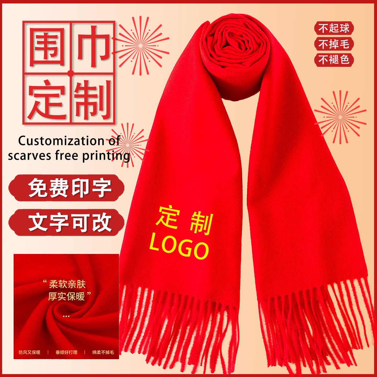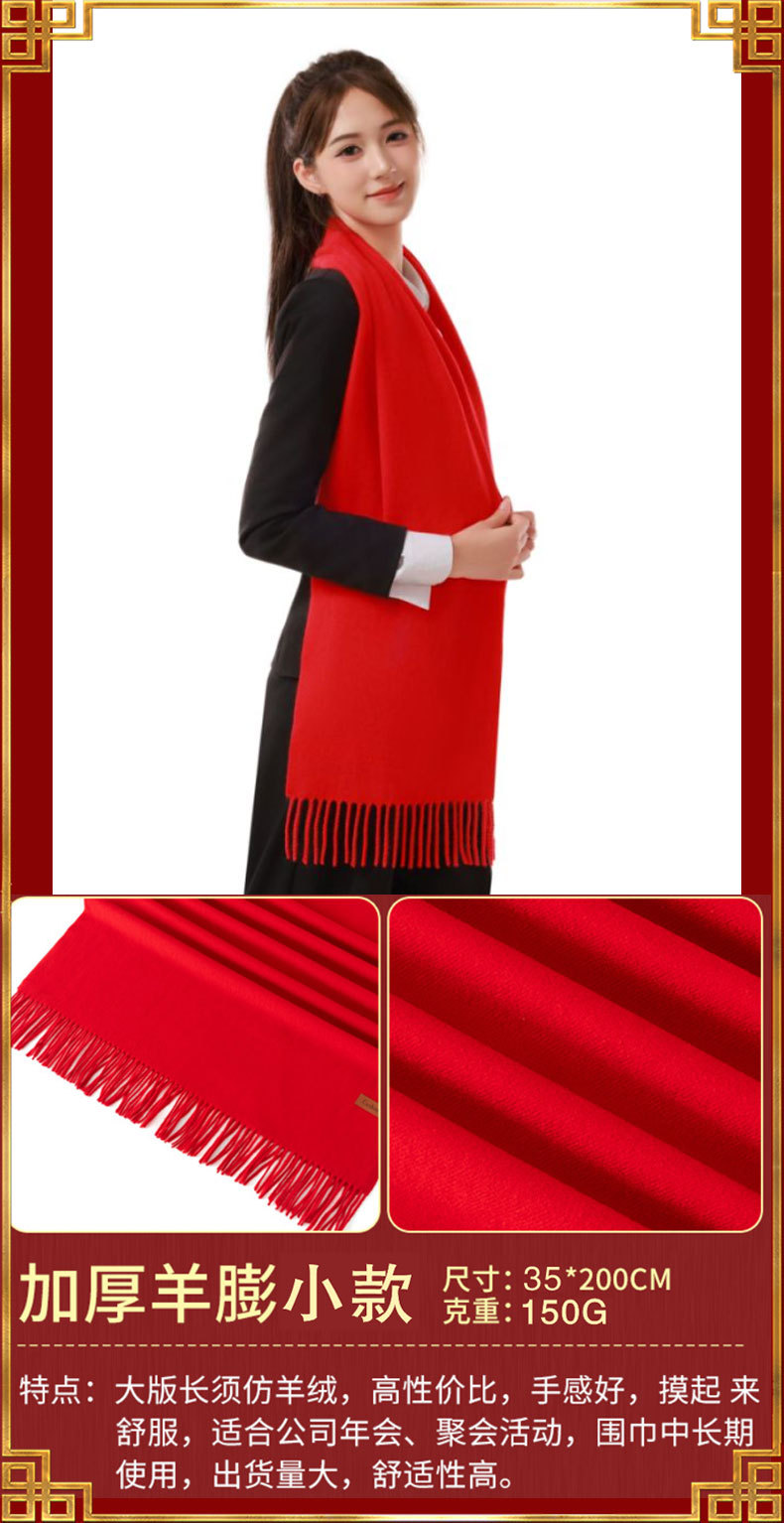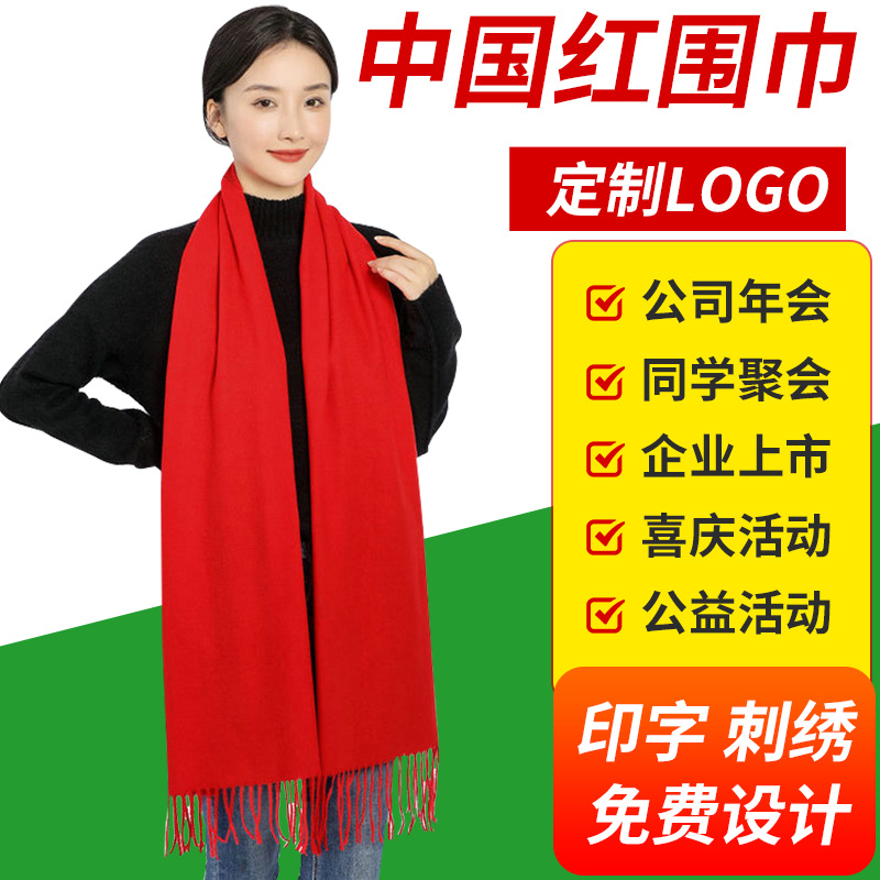 中国红围巾LOGO印字刺绣商务会议开业庆典活动仿羊绒年会礼品围脖