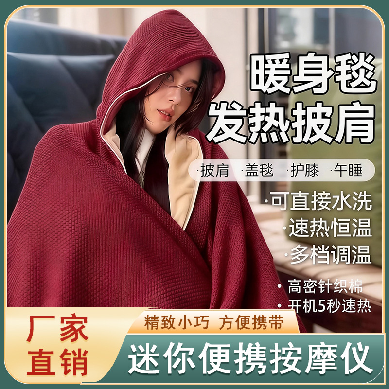 跨境加热披肩露营办公室加热毛毯暖身发热盖毯可水洗USB电热披肩