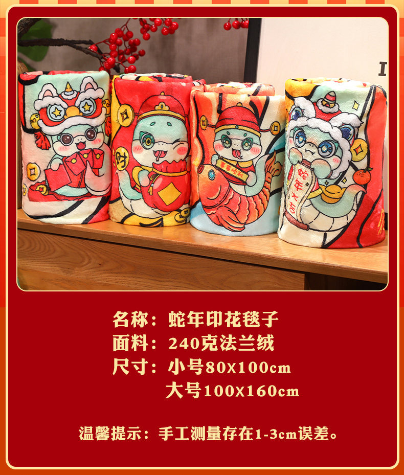 アニメプリント毛布かわいい蛇年エアコン毛布車載小毛布ぬいぐるみ玩具携帯折り畳み毛布
