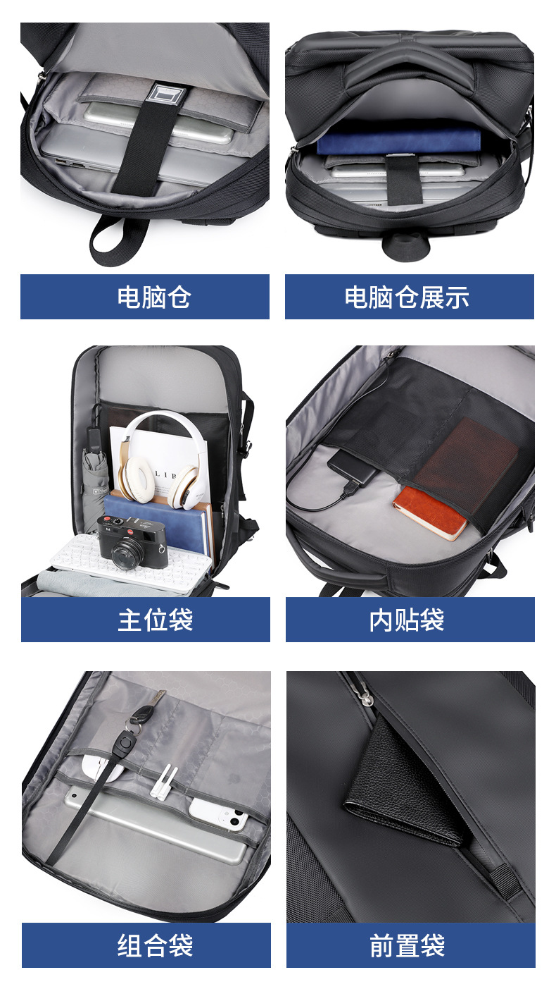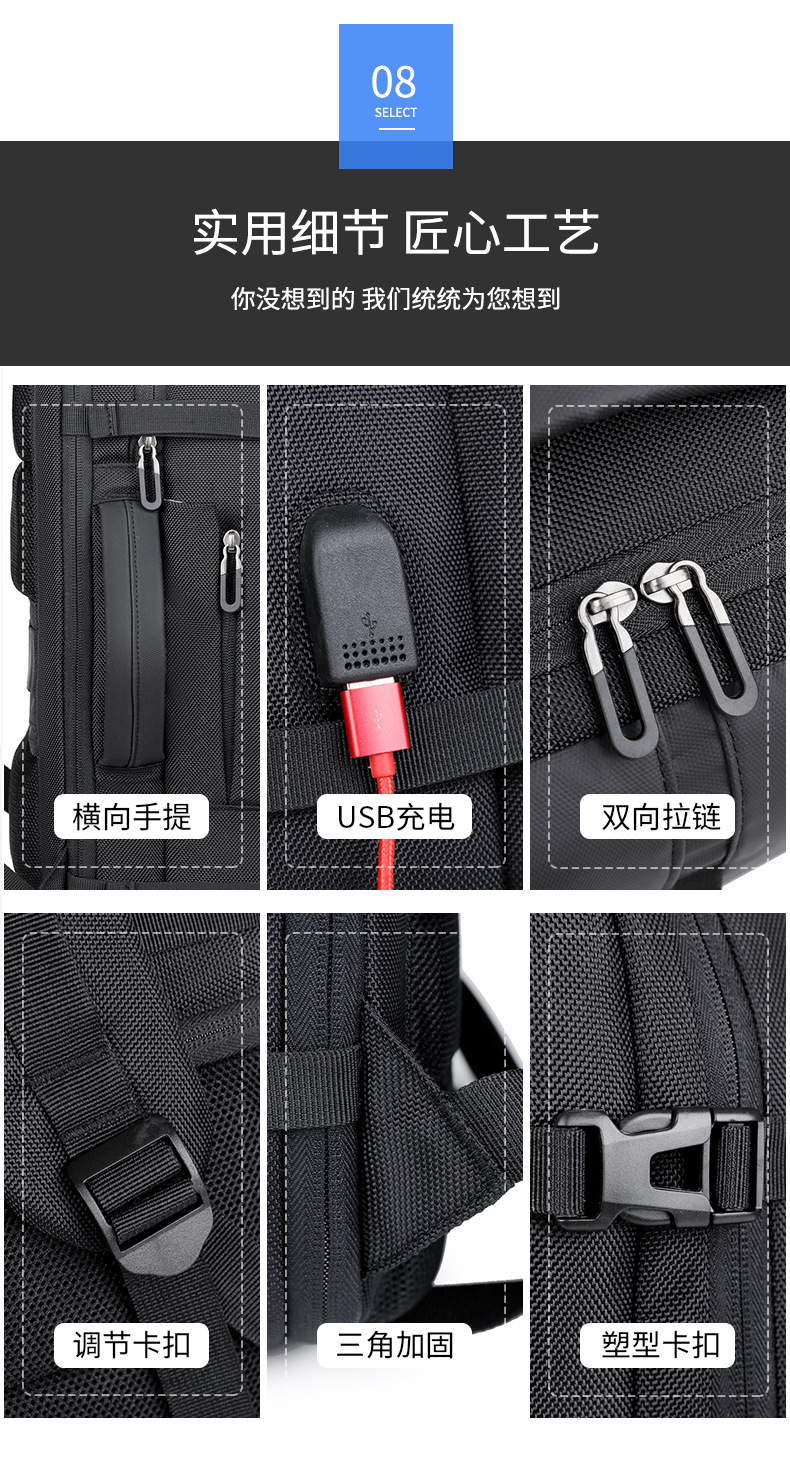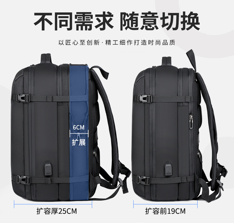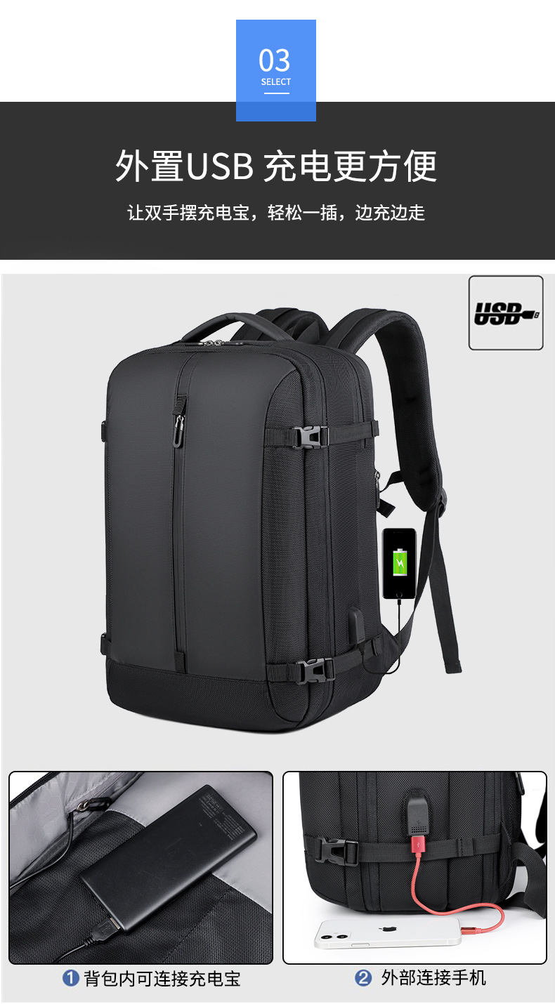 拡張可能な大容量ビジネスバックパック、撥水性短距離出張バックパック、乾湿分離カジュアルトラベルバックパック