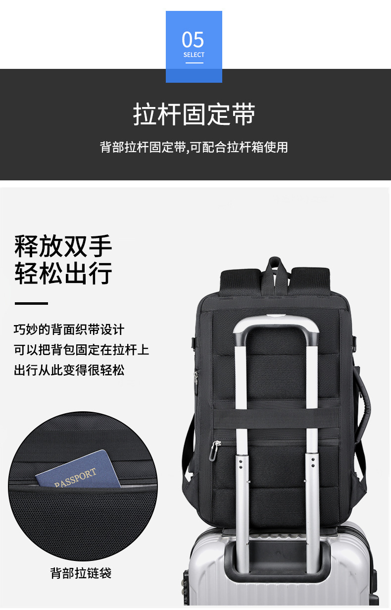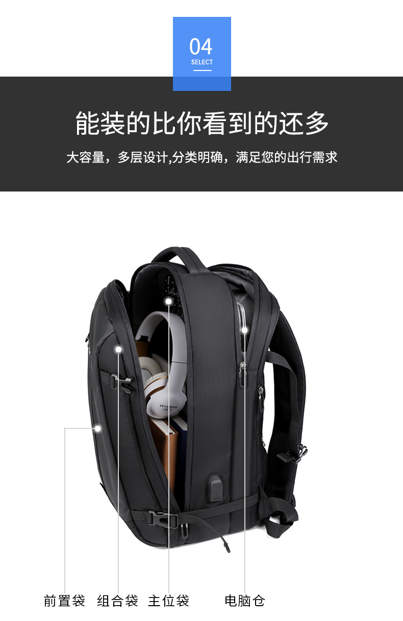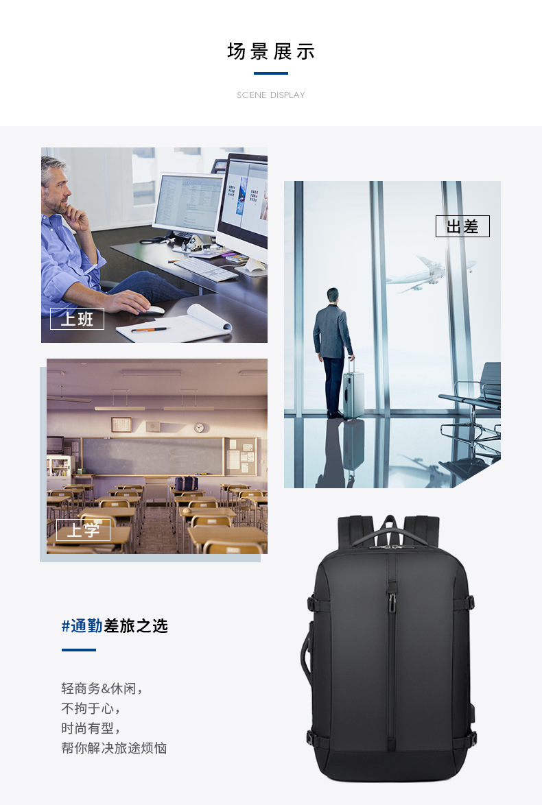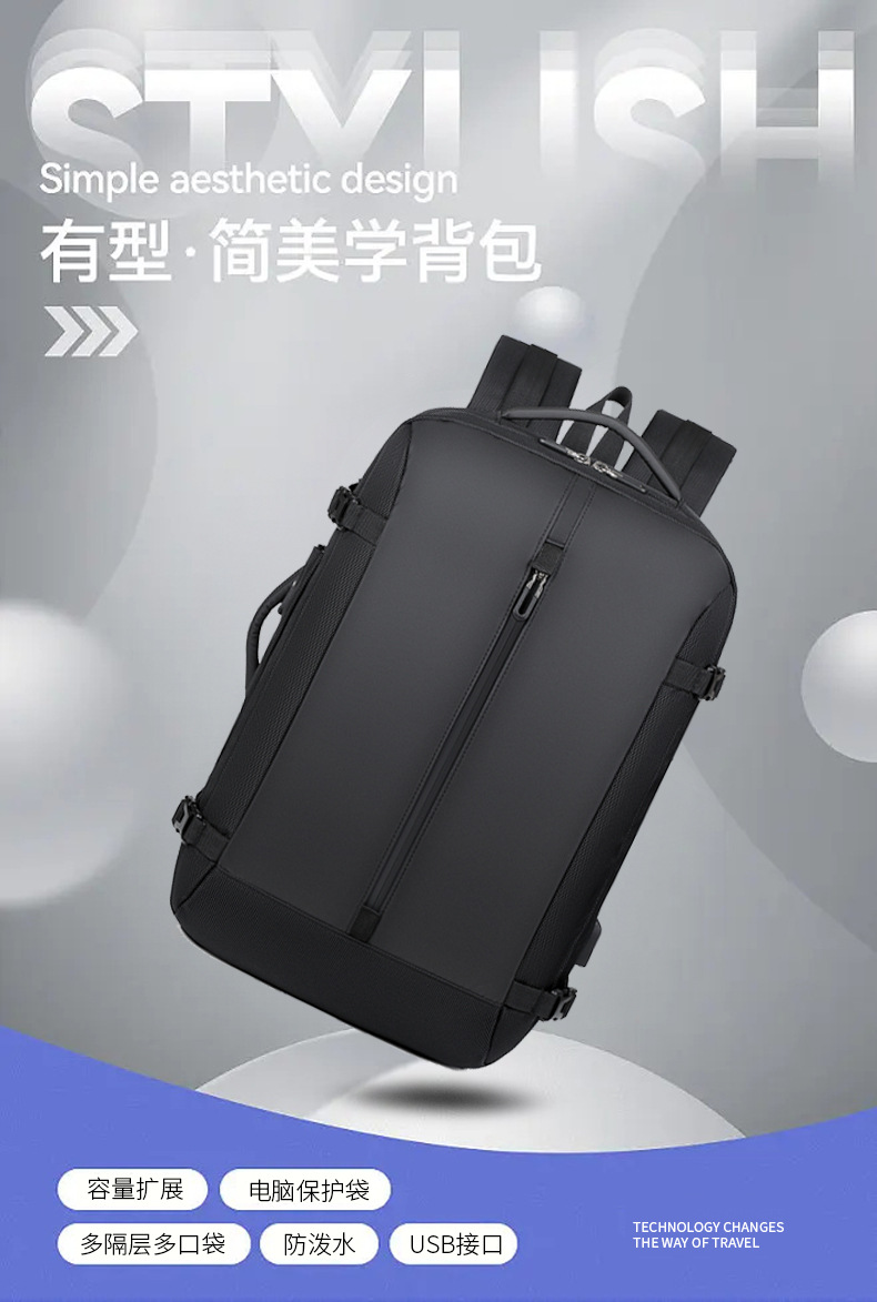 拡張可能な大容量ビジネスバックパック、撥水性短距離出張バックパック、乾湿分離カジュアルトラベルバックパック