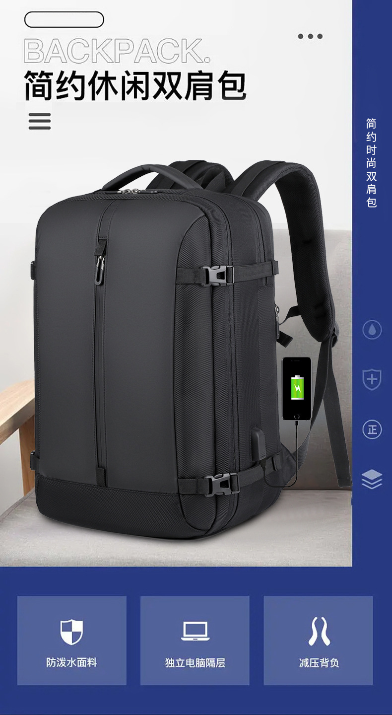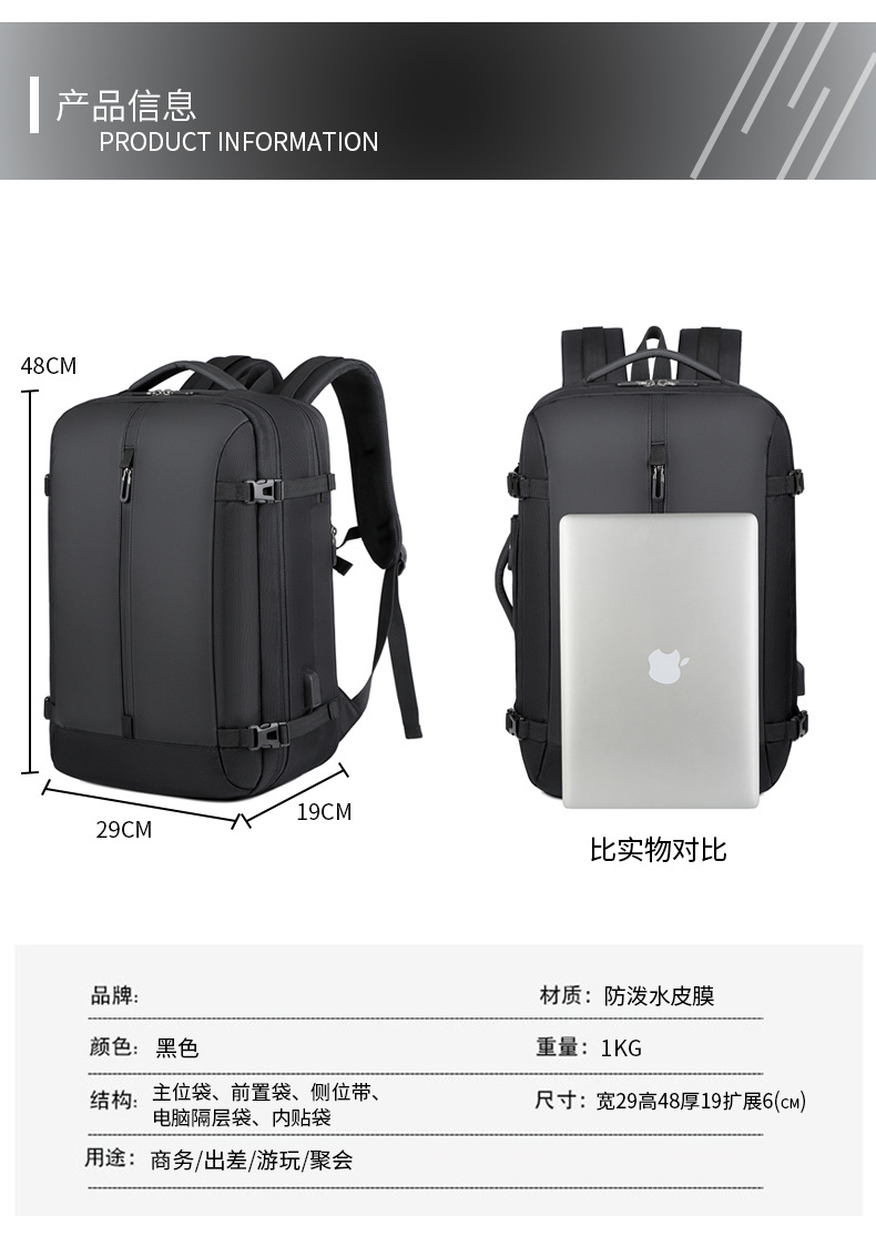 双肩包男商务多功能防泼水电脑包大容量真空压缩出差休闲旅行背包