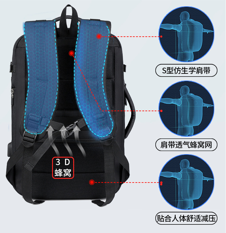 双肩包男士大容量多功能扩容真空背包压缩旅行包书包防泼水出差