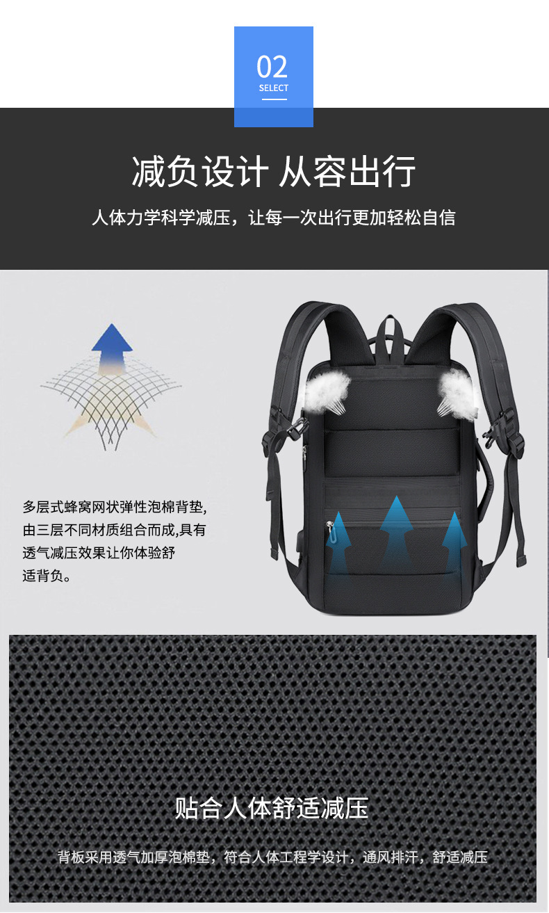 真空压缩扩容电脑包密码锁大容量背包干湿分离男士商务出差双肩包