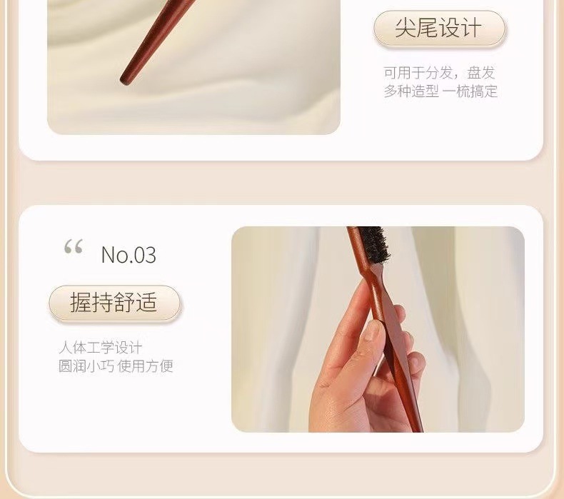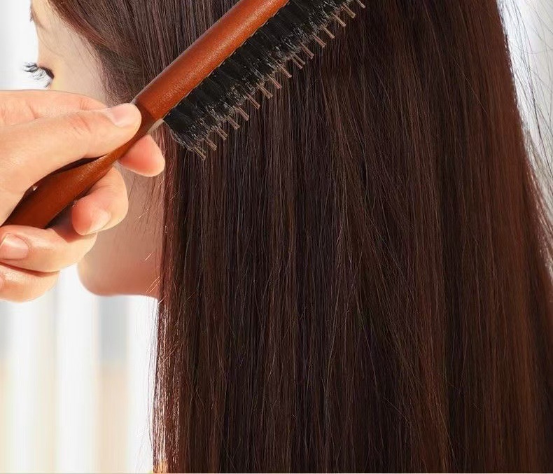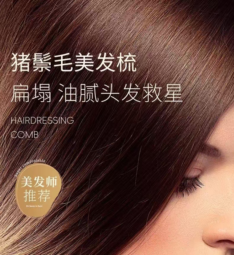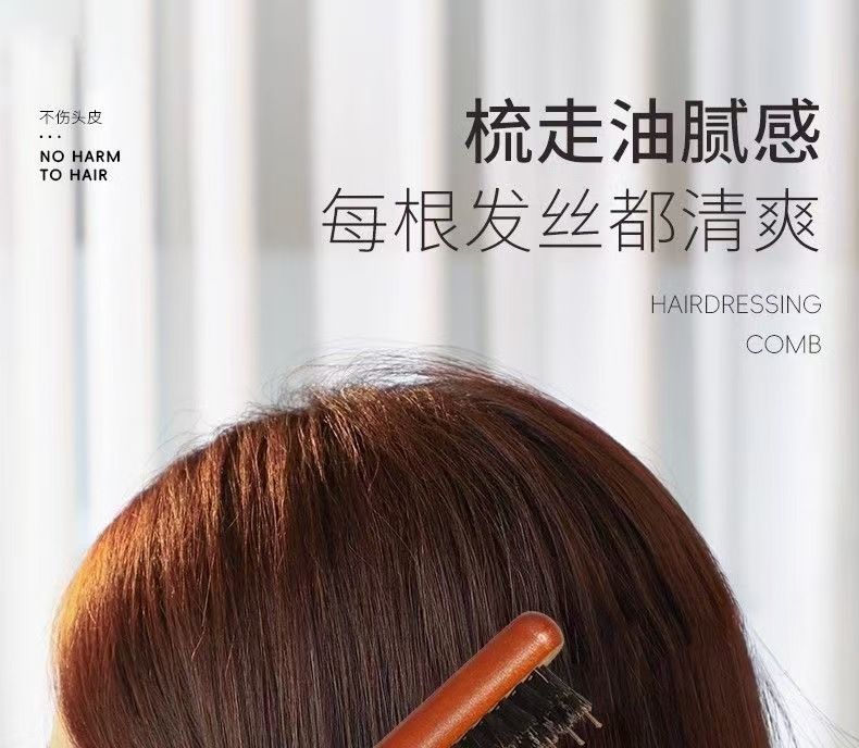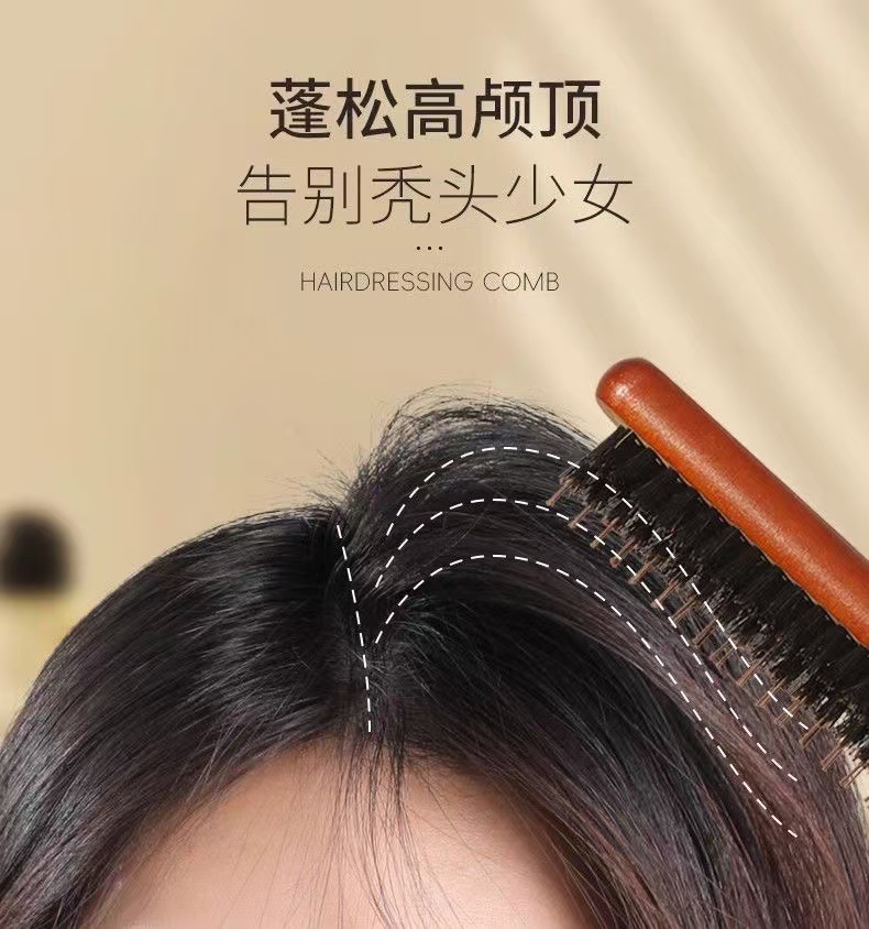 猪鬃毛梳子女窄齿蓬松颅顶不打结顺发三排梳密齿细齿卷发美妆造型