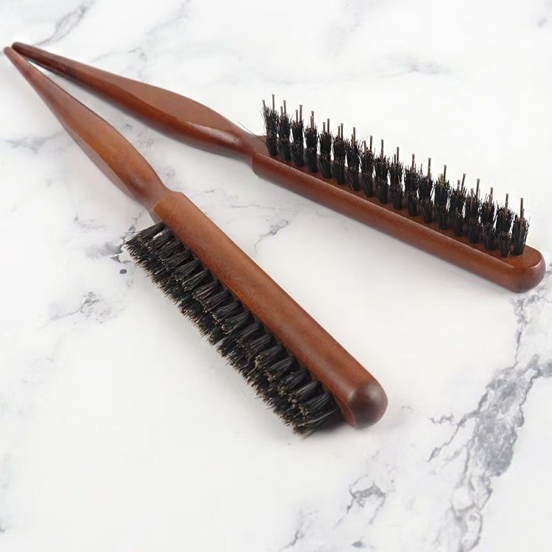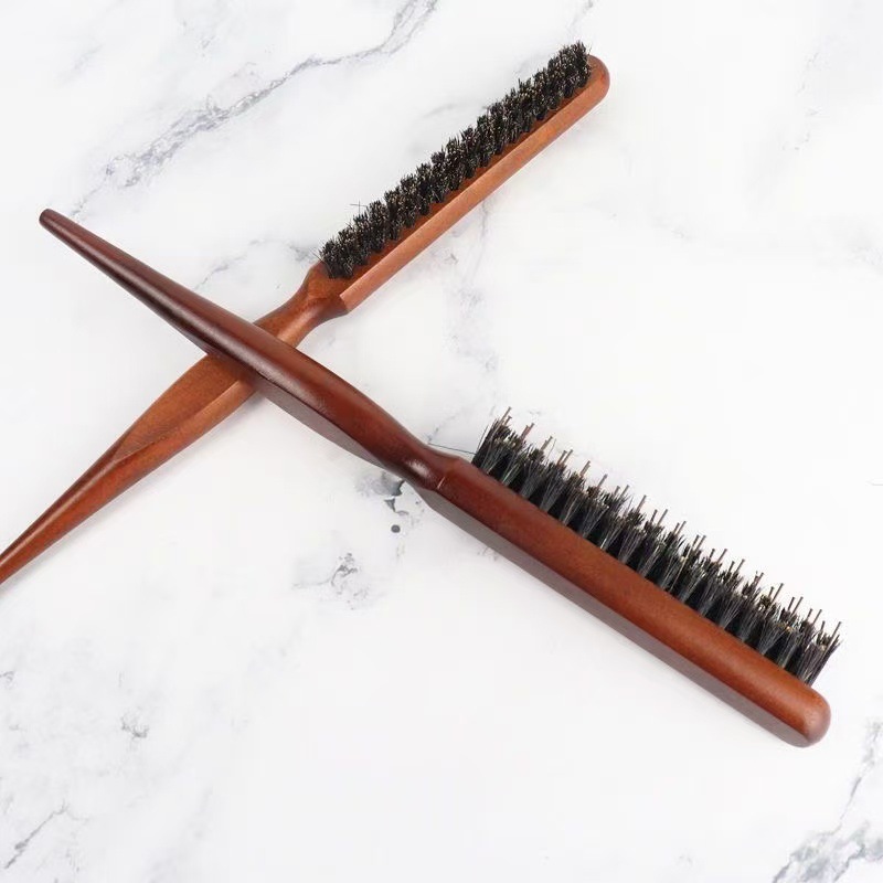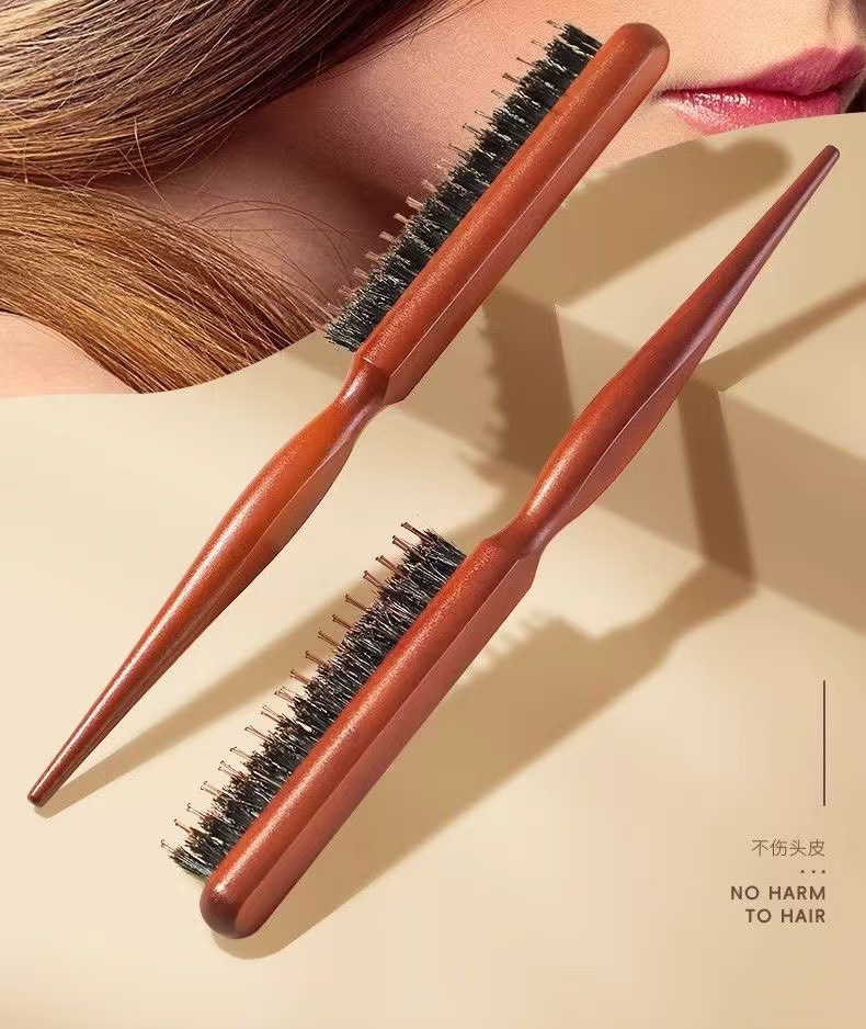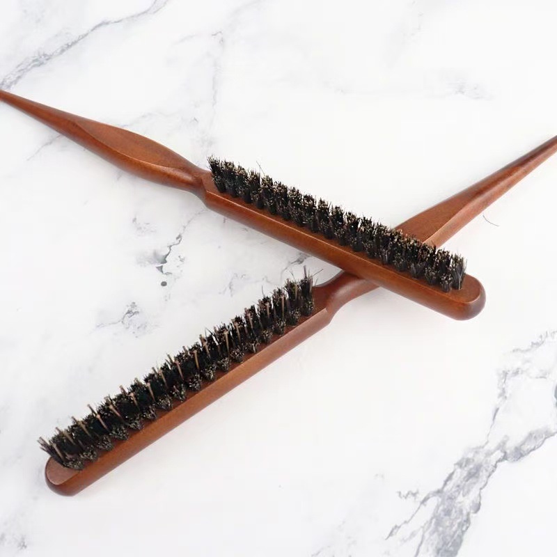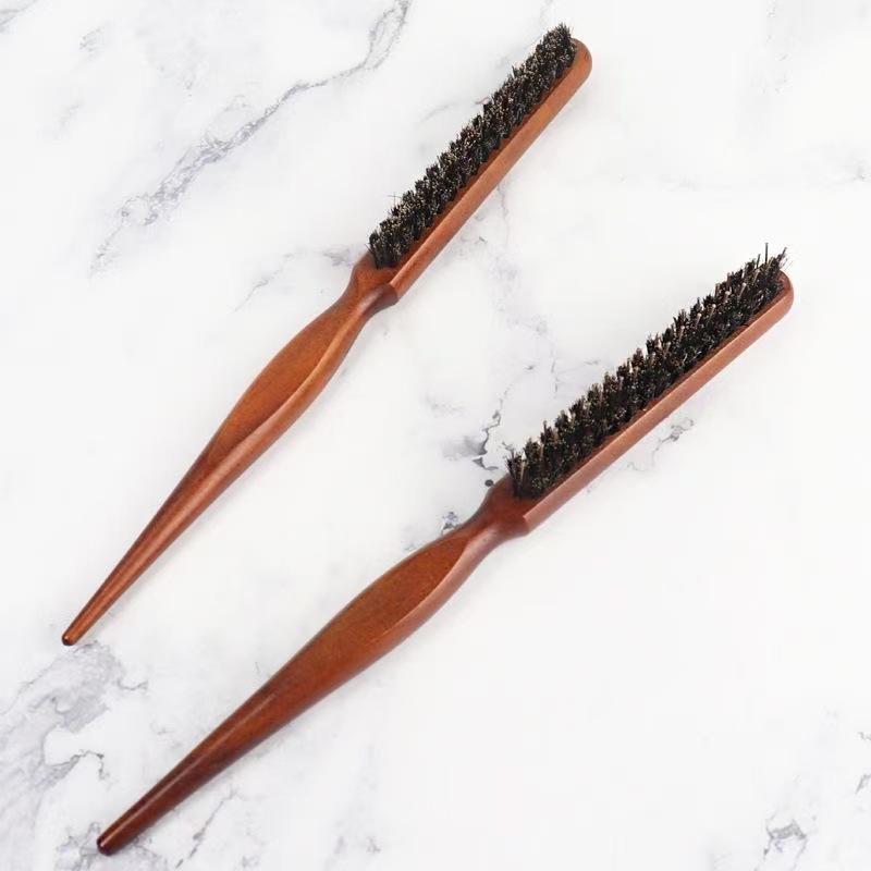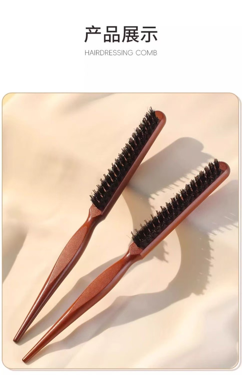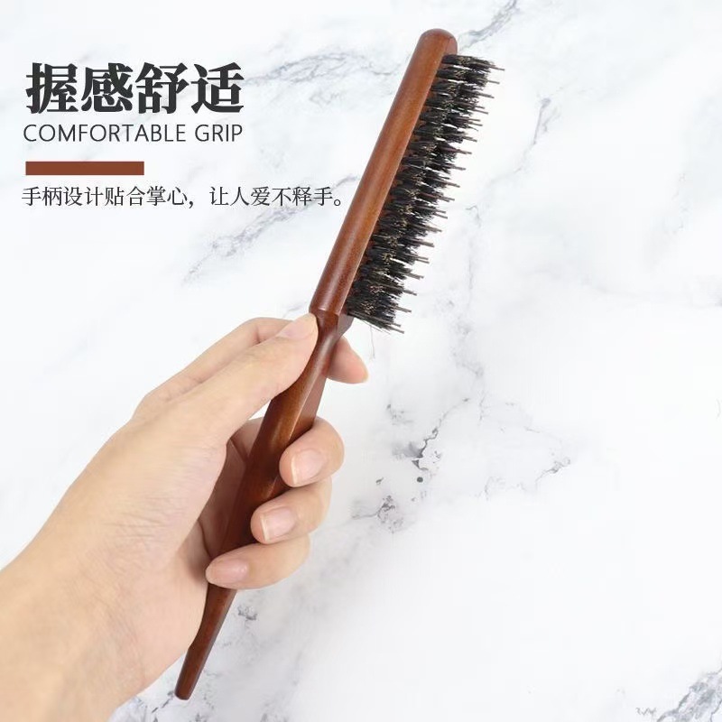 蓬松造型三排卷发打毛梳窄盘发梳扎头专用包发美妆梳子猪鬃化妆师