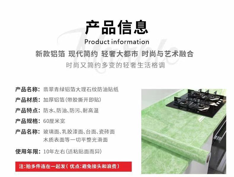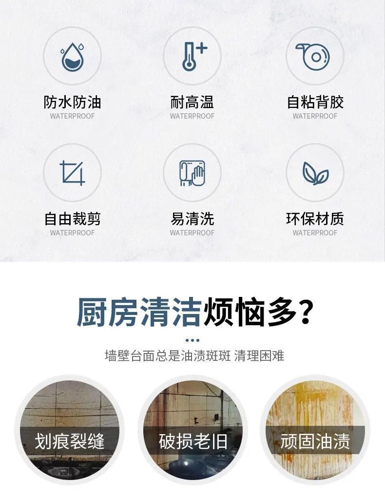 厨房防油贴纸防水墙纸自粘耐高温灶台台面加厚瓷砖翻新大理石贴膜