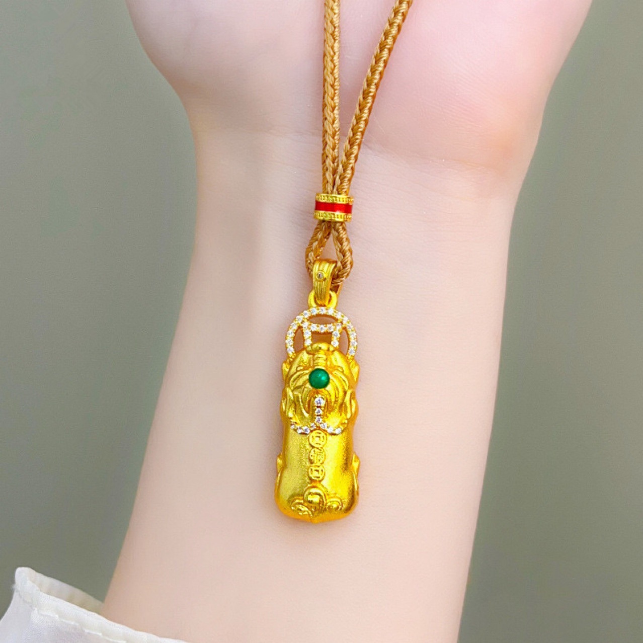 金店同款古法沙金999绿点钻貔貅吊坠项链男女情侣国潮送女友礼物