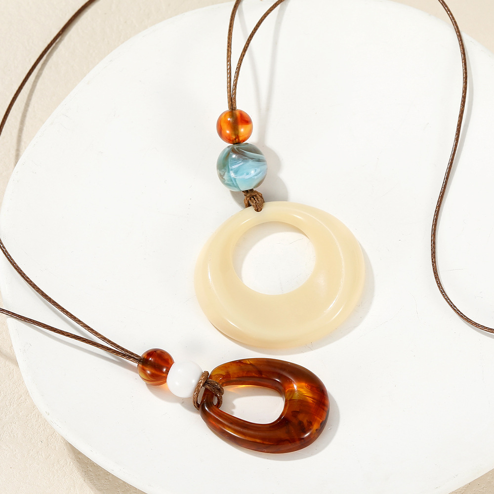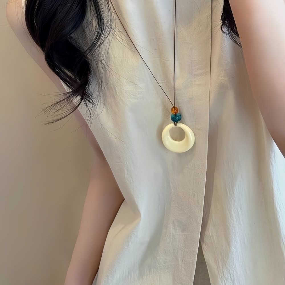 新中式禅意不规则椭圆长款吊坠项链女复古民族风简约毛衣链配饰品