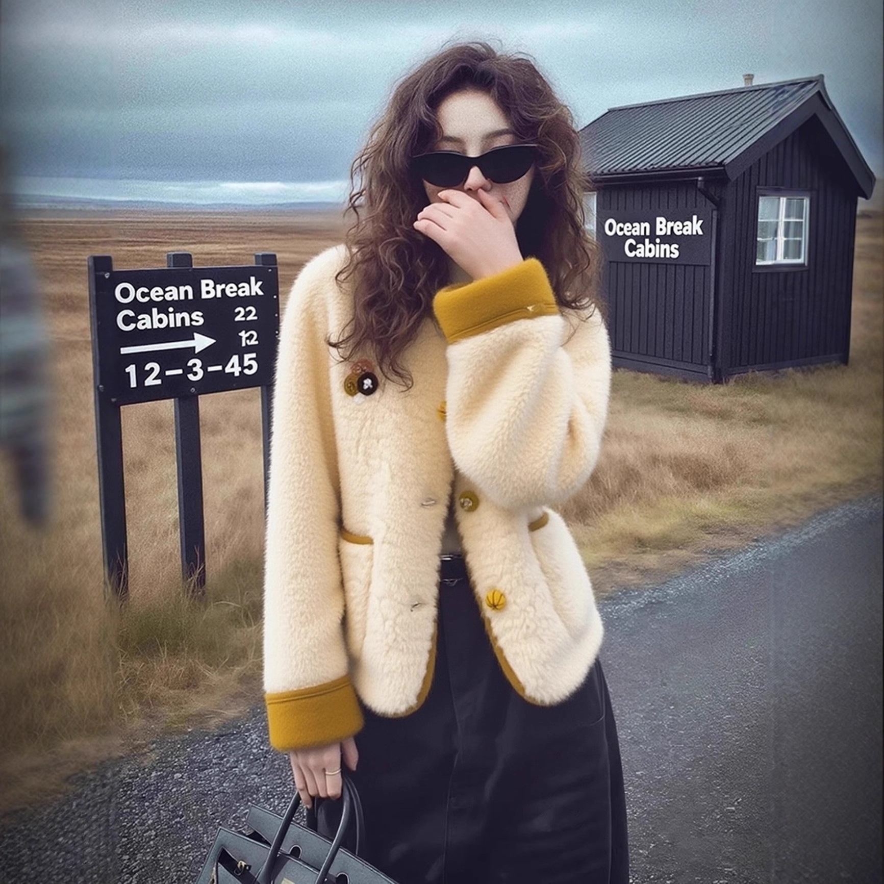 Xiaoxiangfeng ホワイトラムウールジャケット女性のための 2025 秋と冬の新しいオールインワン厚く暖かいハイエンドジャケットトップ