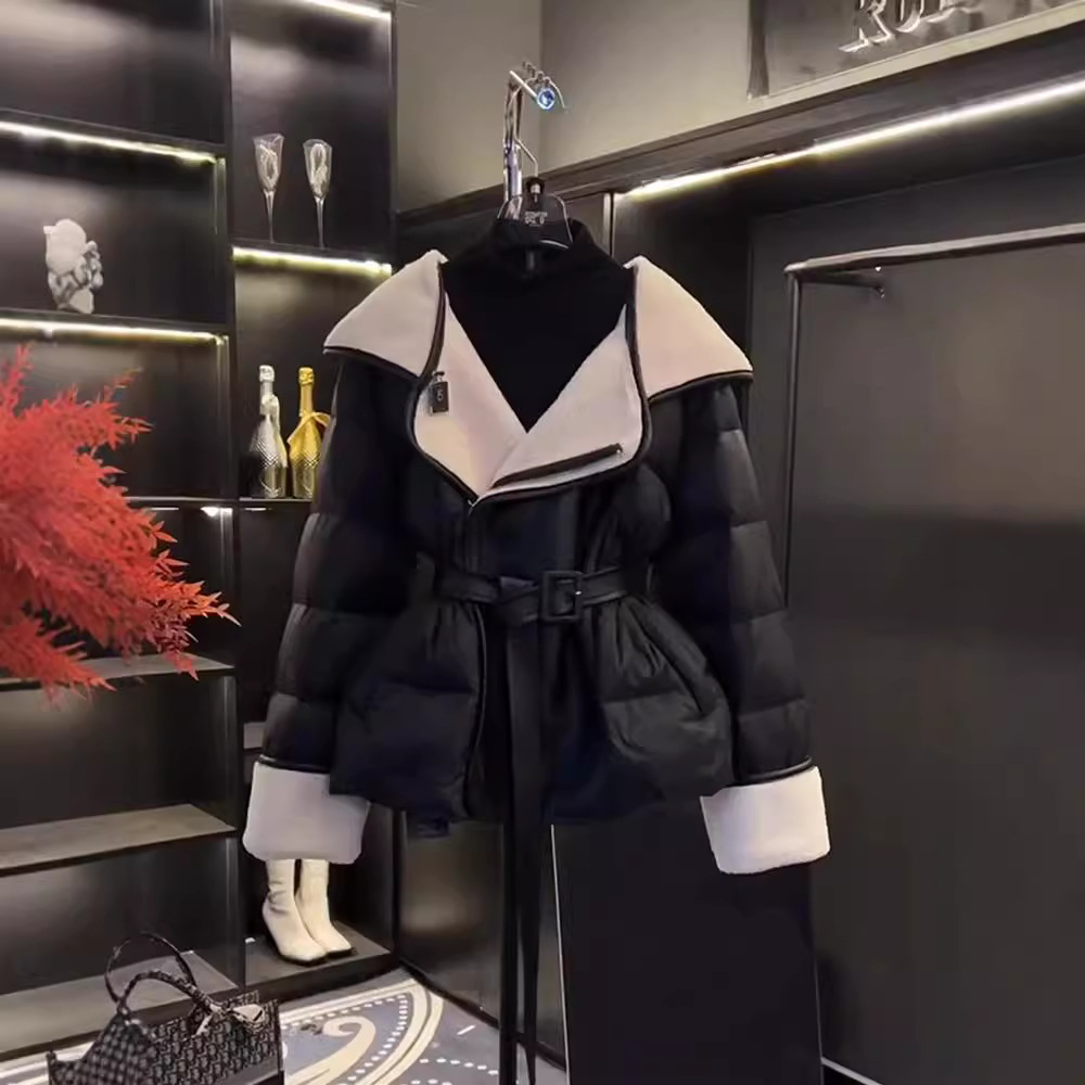 高级感白色拼接外套2025冬季新款独特超好看气质加厚羊羔绒上衣