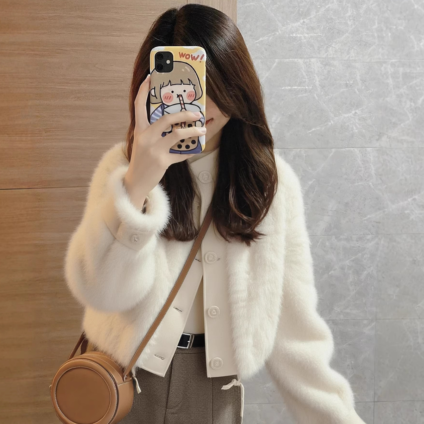 冬の新型の軽豪華な高級の怠惰な風の白いのはウサギの毛の短いコートの名媛の気質の女王の範のぬいぐるみの上着をまねます。