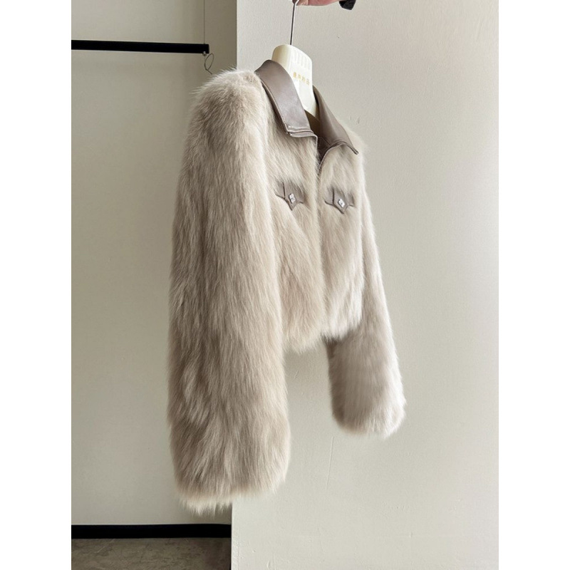 欧美高级感环保皮草气质名媛小香风仿狐狸毛皮毛一体毛毛外套女