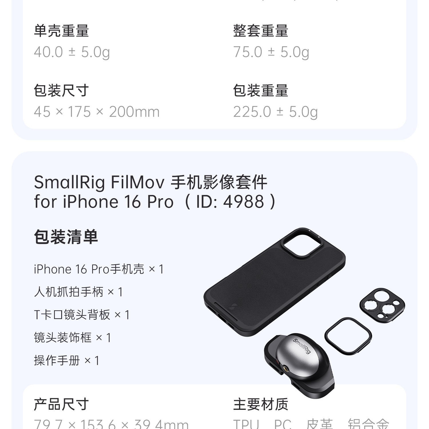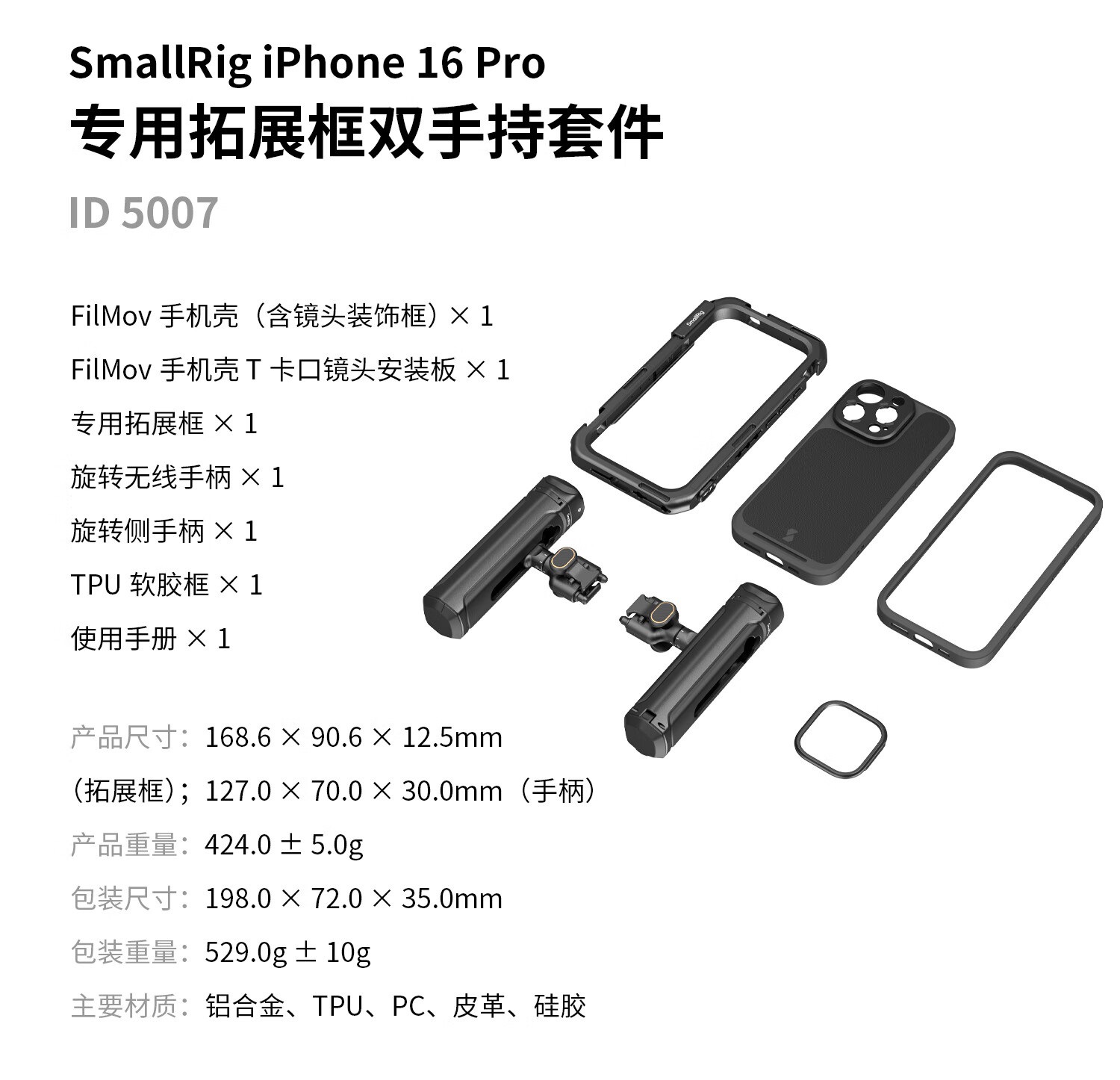 SmallRigスモーグ・ブランドンLi連名適用iPhone16Pro/ProMax携帯電話映像カバー