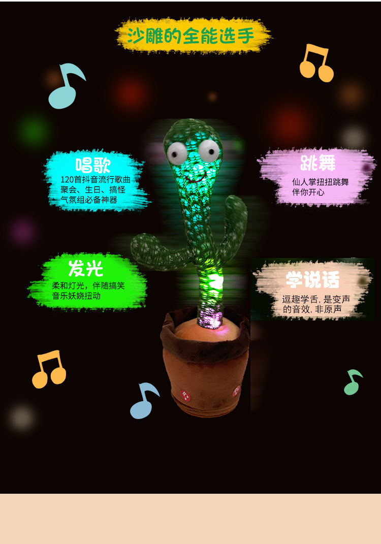 クロスボーダーダンシングカクタスは、話すことを学ぶことができるサボテンのおもちゃで、揺れる、話す、動く、音楽を録音することができます。