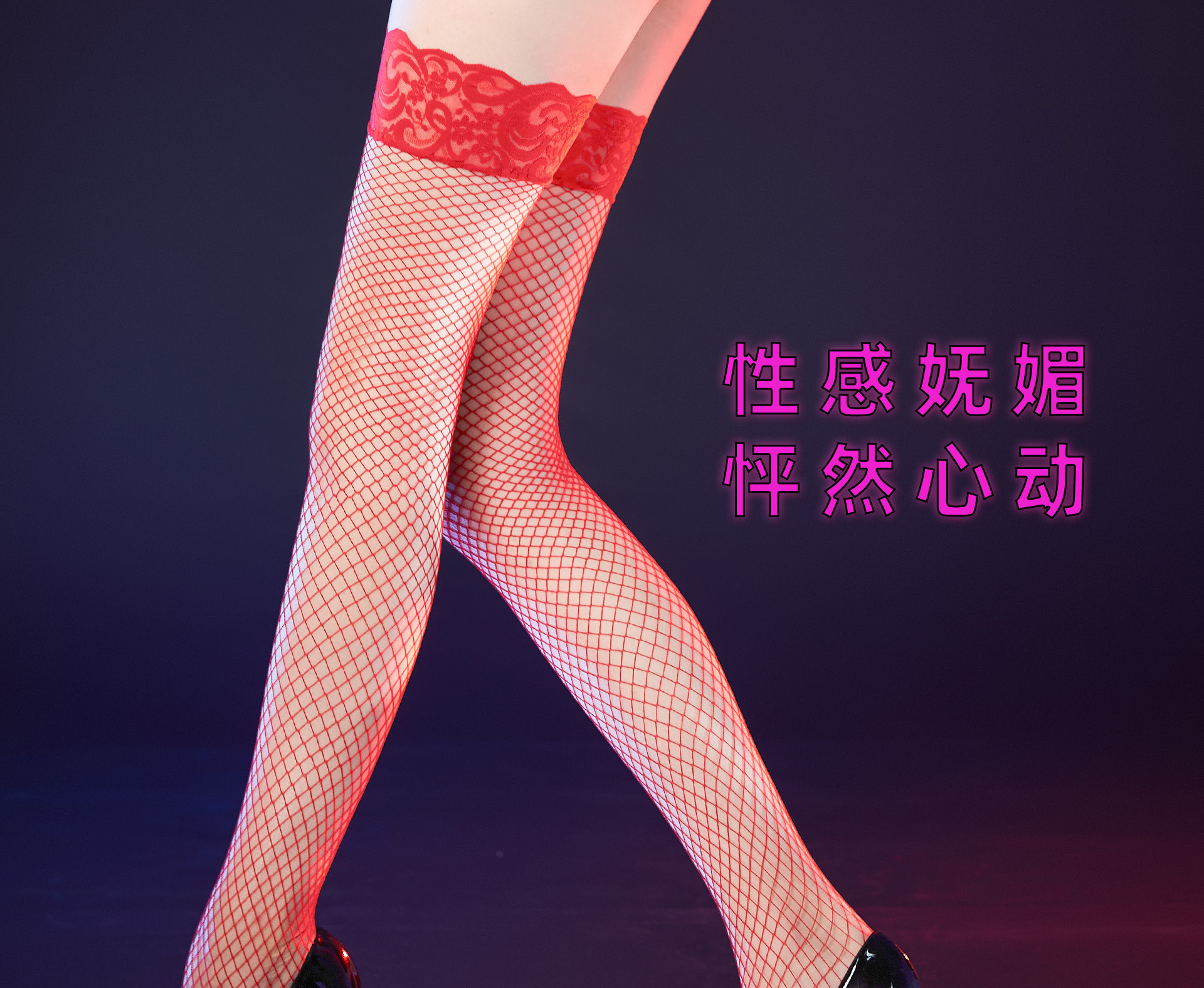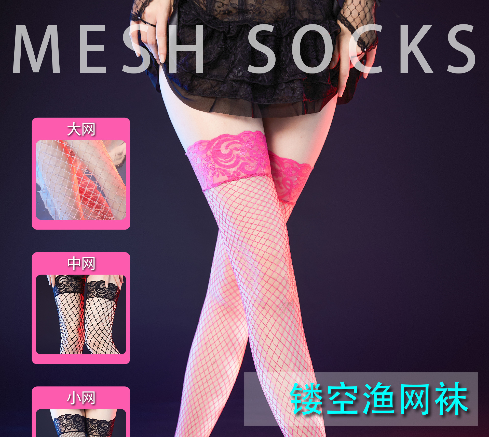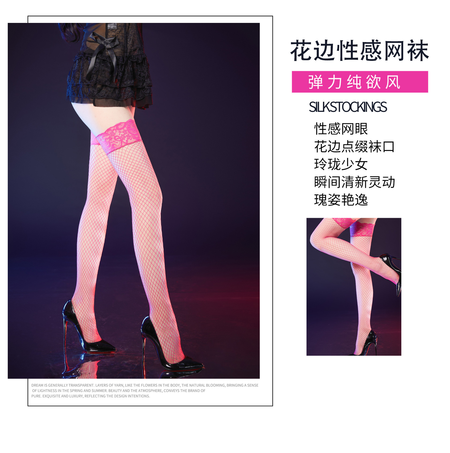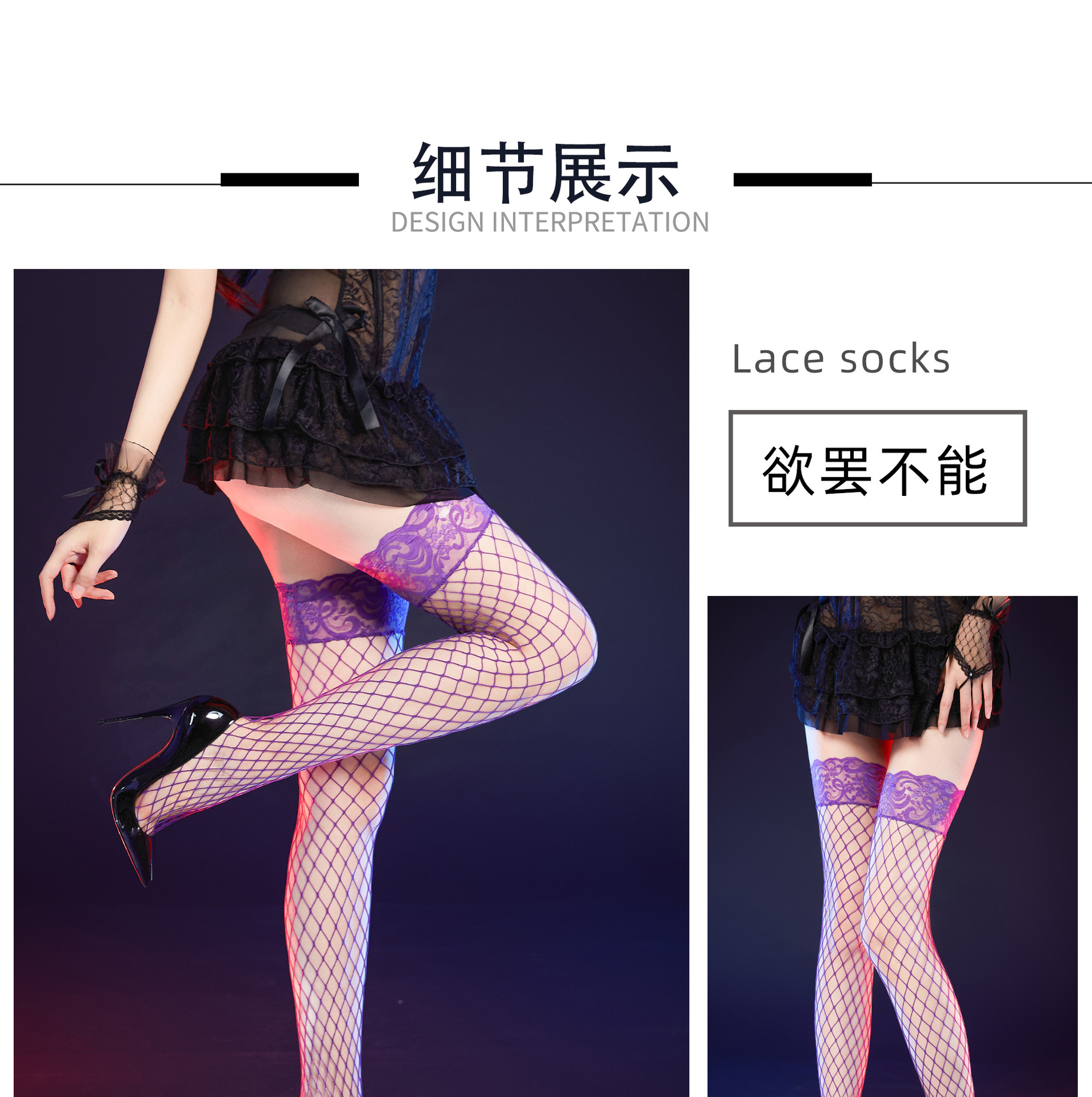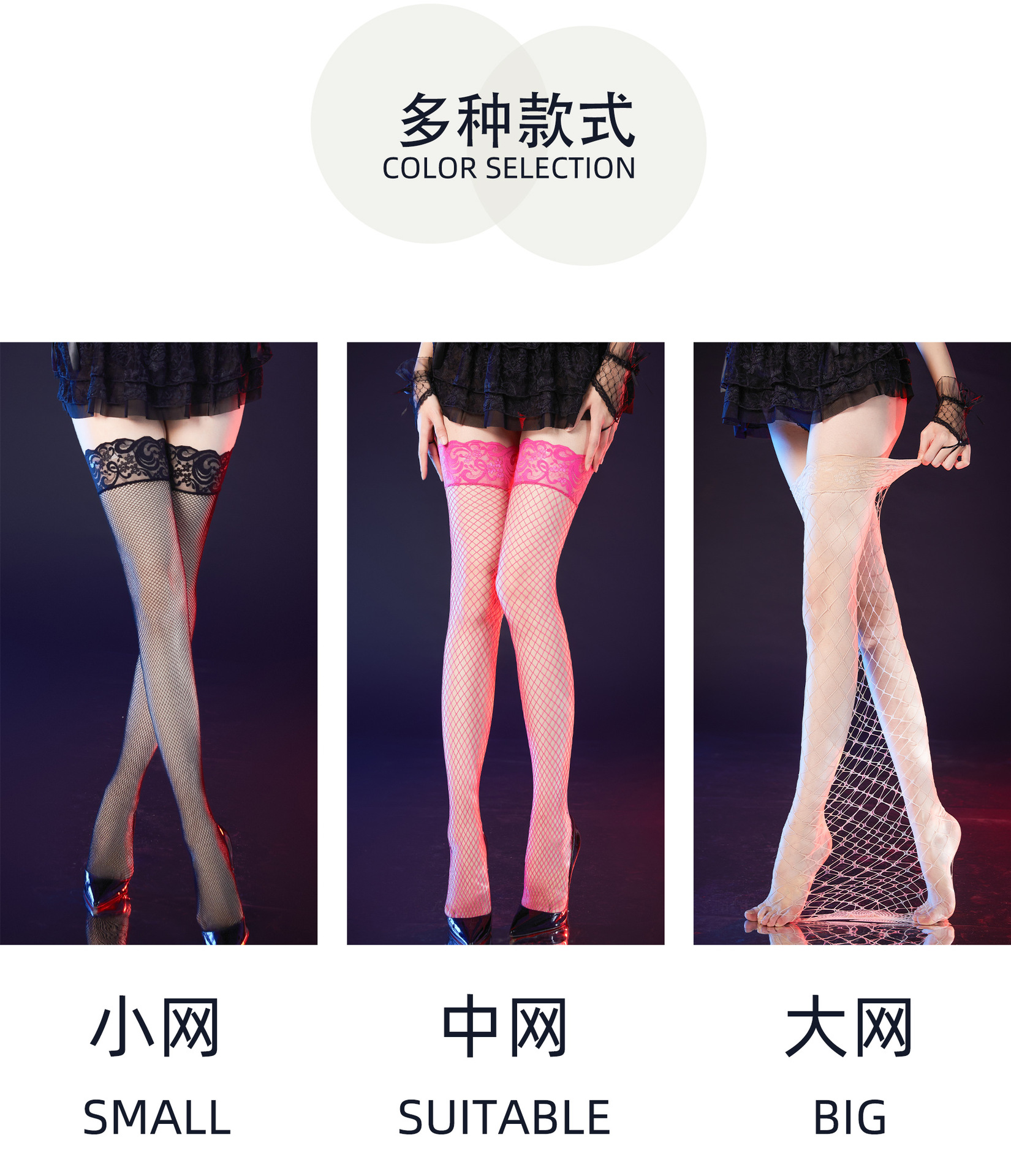 クロスボーダー新作フィッシュネットソックス、幅広レースメッシュ、膝上丈ソックス、シリコン滑り止め付きロングフィッシュネットストッキング、欧米風