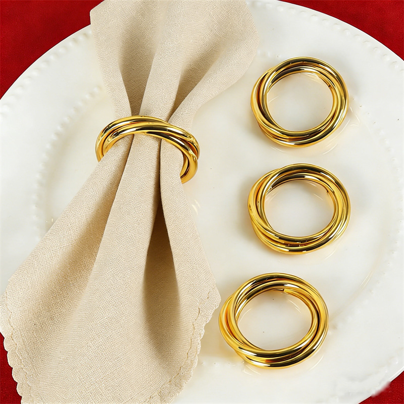 跨境几何三环金属圆圈餐巾环餐厅餐具装饰摆台婚礼金色餐巾扣批发