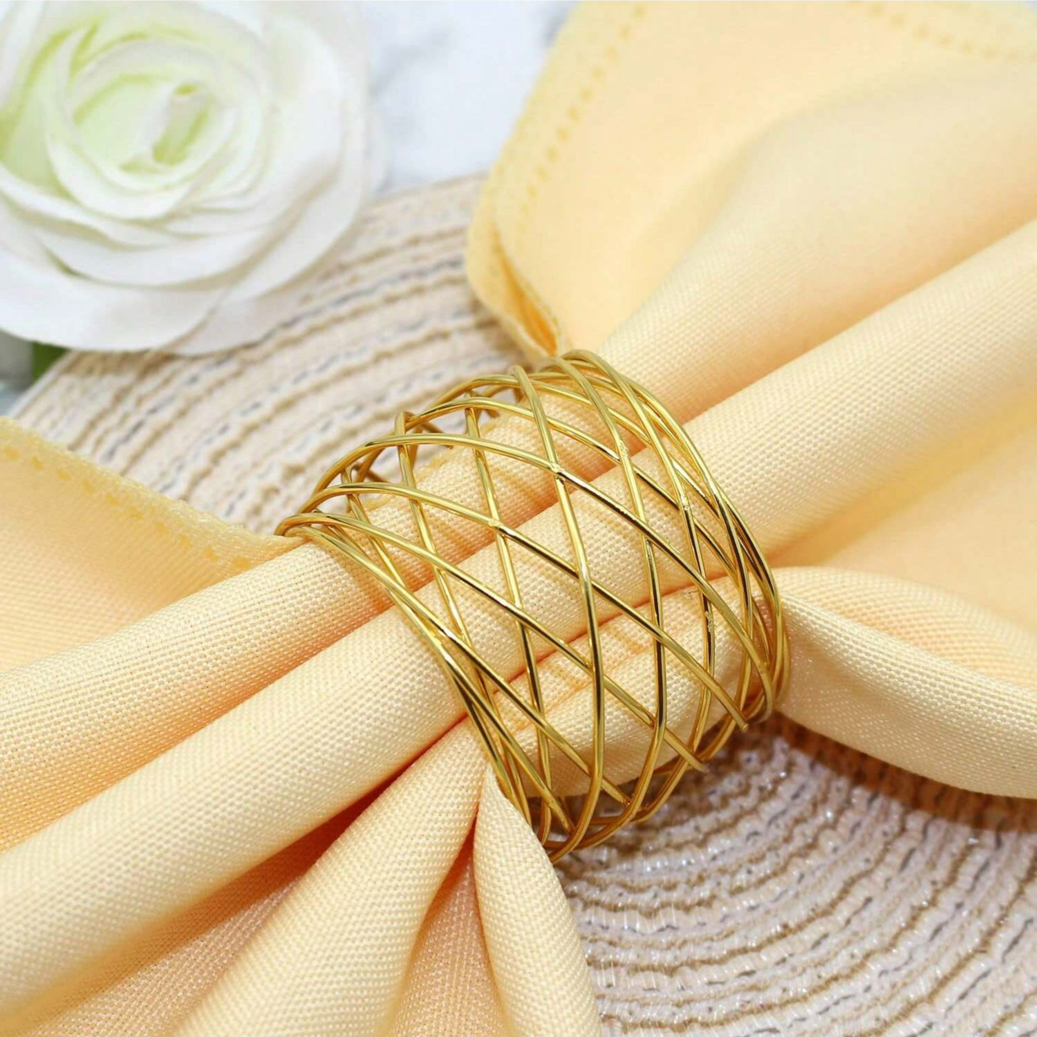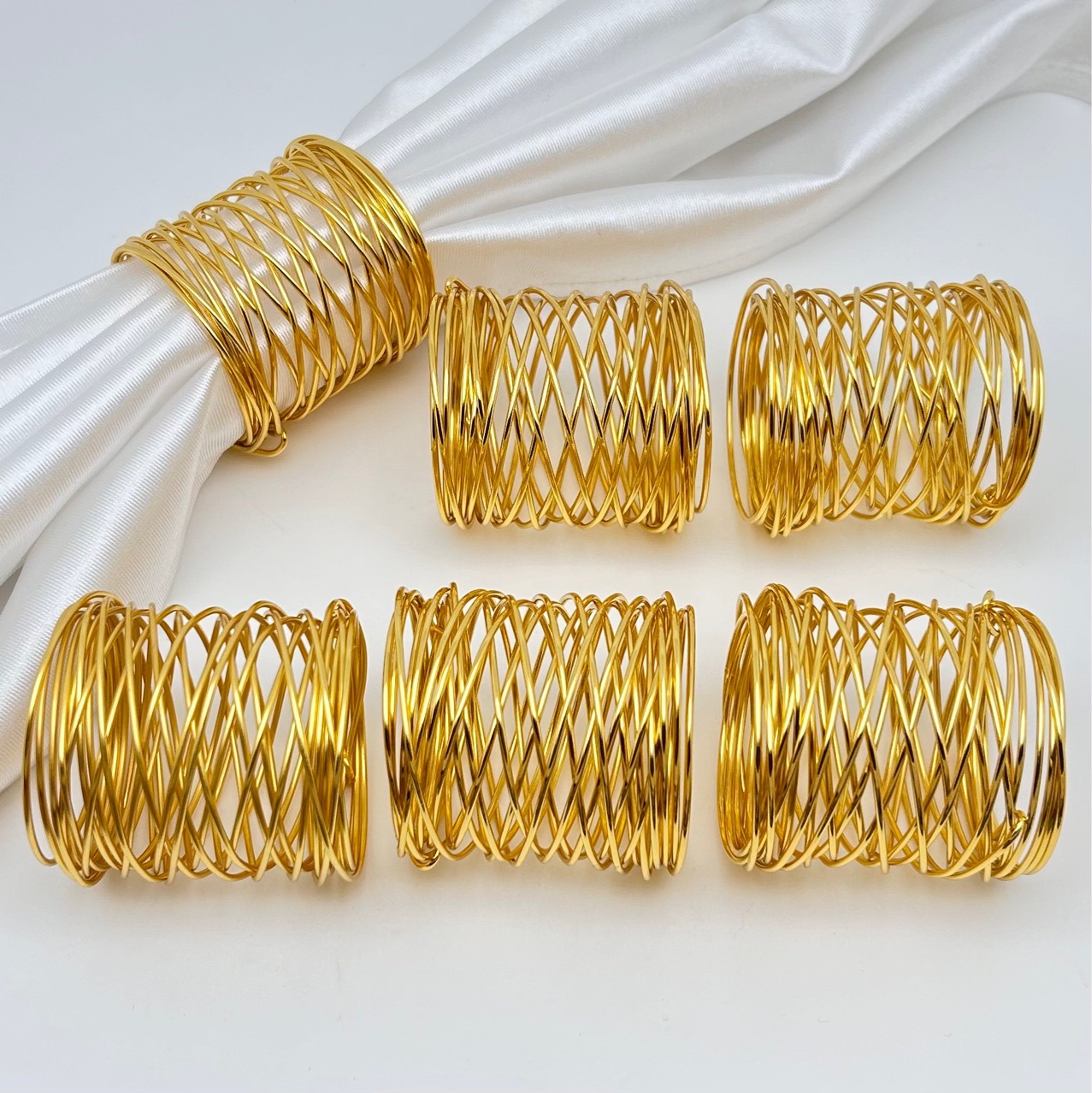 国境を越えた金属製メッシュナプキンリング、金メッキ仕上げ、ホテルやレストランのテーブル装飾用ナプキンホルダー、メーカー卸売