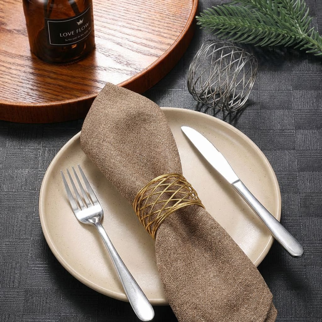 シンプルで上品なホテル風メタルナプキンリング、洋食テーブルの食器装飾、布製リングバックル