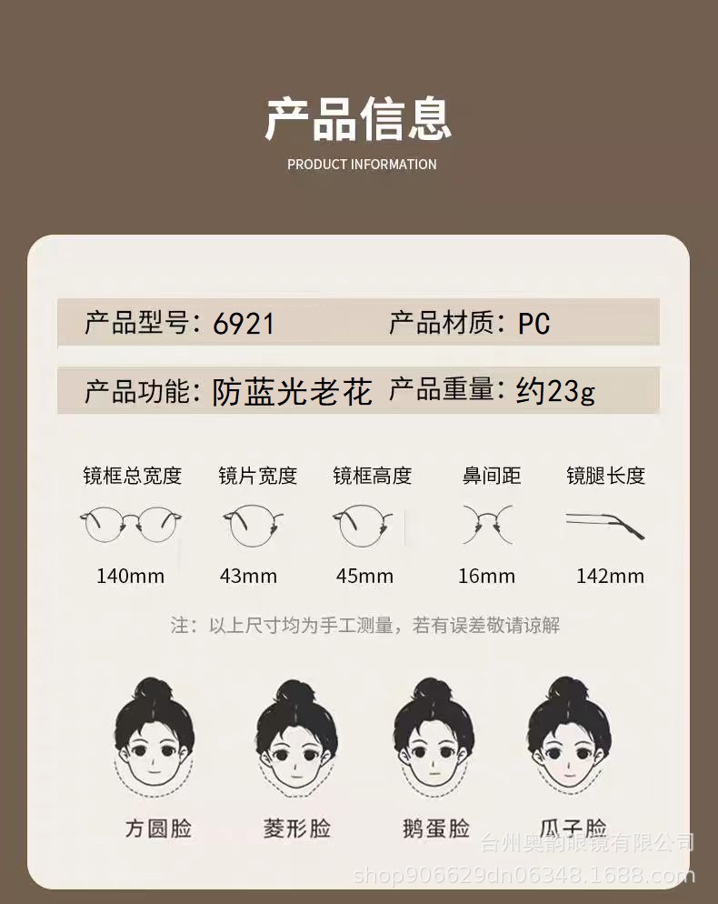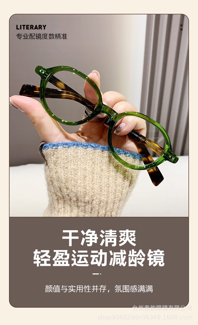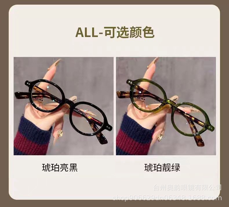 时尚椭圆小框复古米钉防蓝光老花镜时尚清新百搭款素颜平光镜