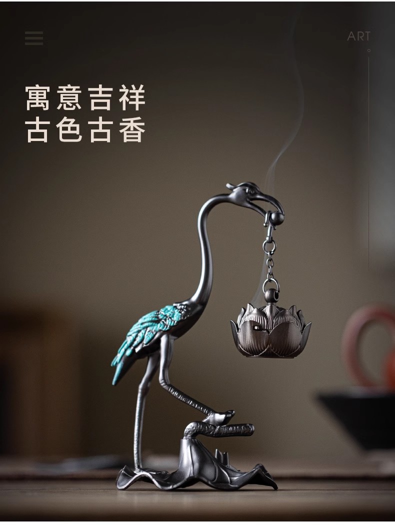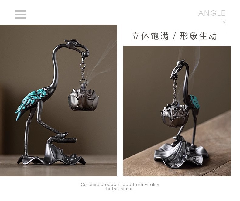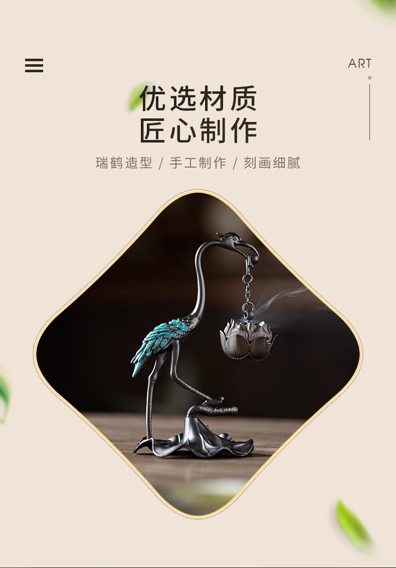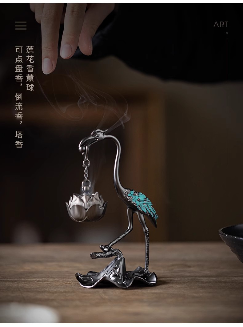 小型ツル香炉蓮花炉創意家庭用置物盤香炉ツル吊り上げ炉祥雲線香薫炉