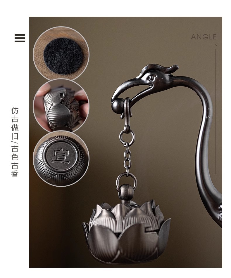 ツルの蓮の花吊り炉無粘粉小祥雲創意薫香炉レトロ合金玄関香道置物香炉