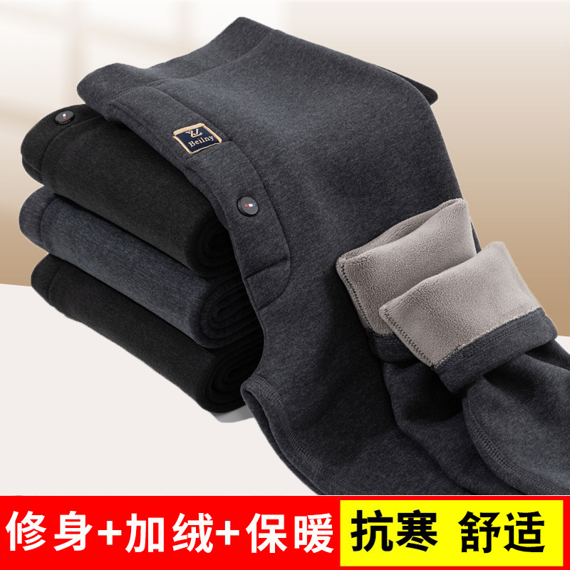 卸売り男性保温ズボンは冬にベルベットを厚くしてズボンのズボンを厚くした男の腰の高い大きいサイズの綿ズボンの防寒ズボン