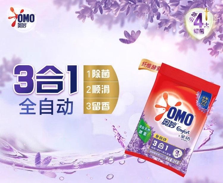 奥妙洗衣粉3kg全自动三合一除菌含金纺薰衣草樱花香家用无磷6斤装