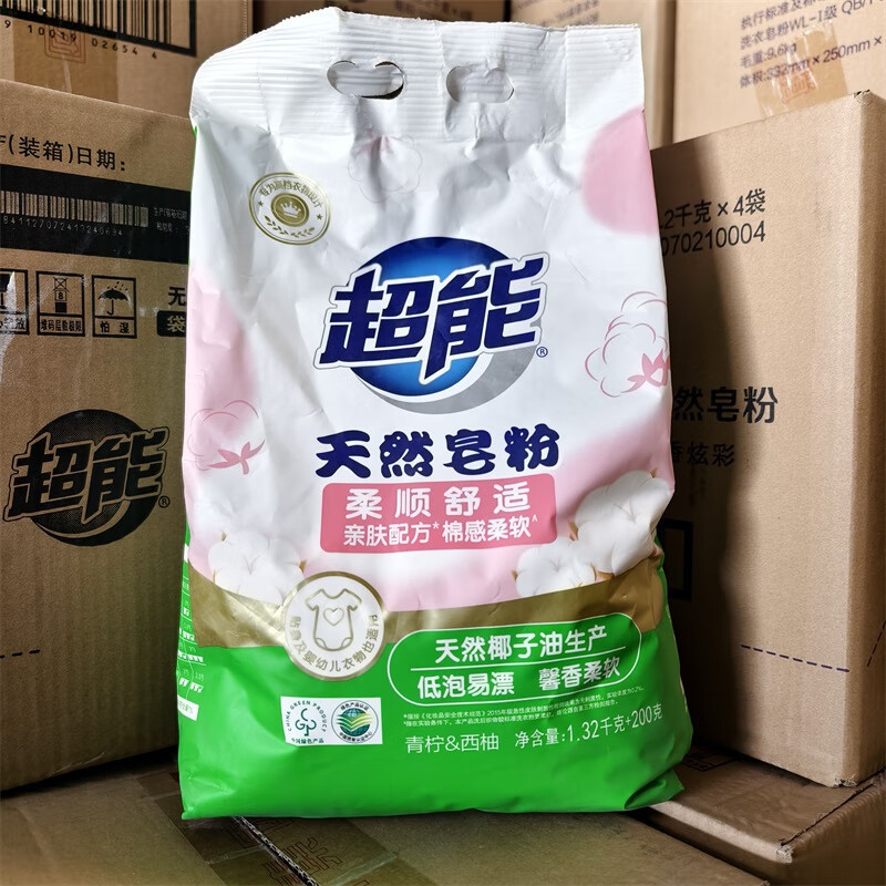 超能天然皂粉1.32kg+200g青柠西柚持久洗衣粉馨香柔顺舒适易漂洗