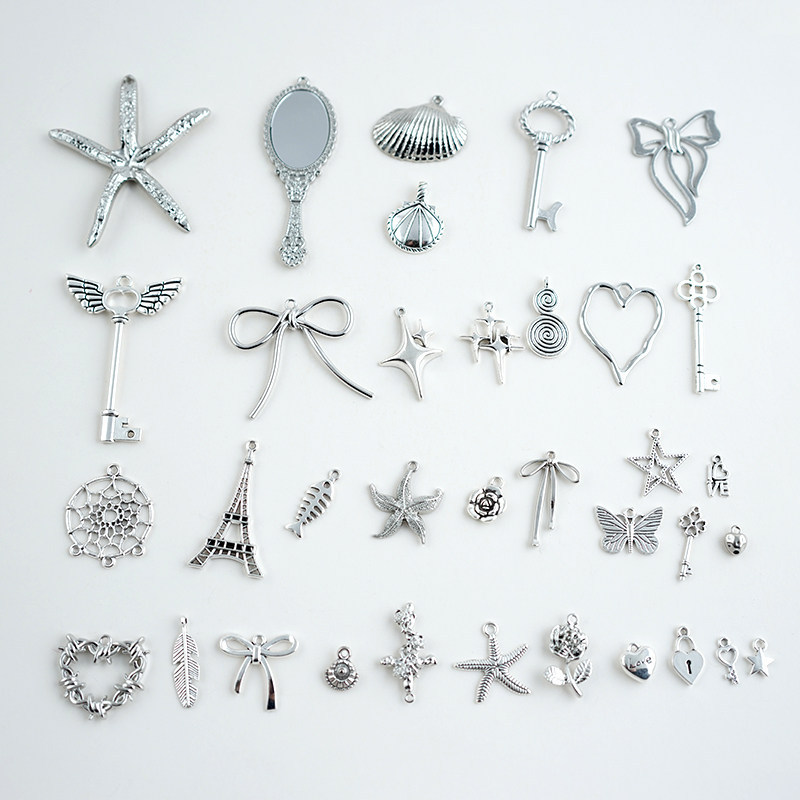 新款配饰手工diy复古银白K小吊坠钥匙扣项链钥匙扣金属制作材料