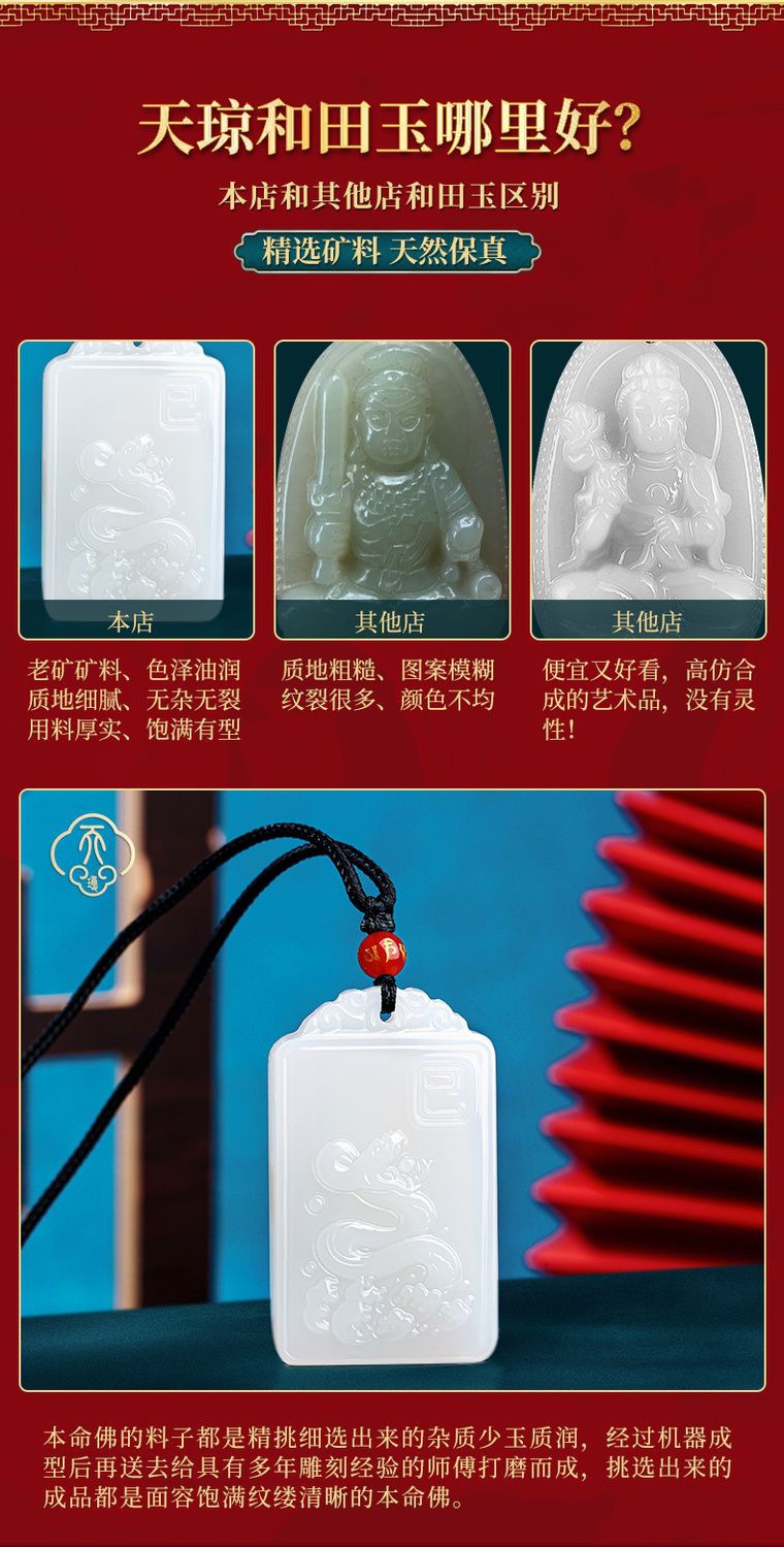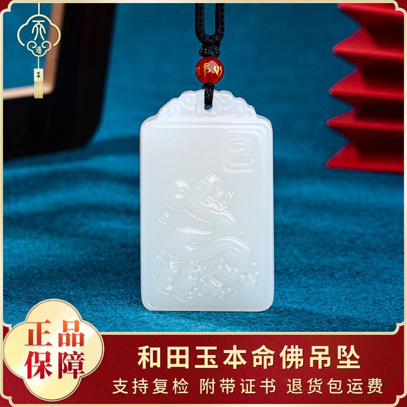 天然和田玉両面本命仏ペンダント十二生肖玉女真玉龍牌ネックレス男ペンダント