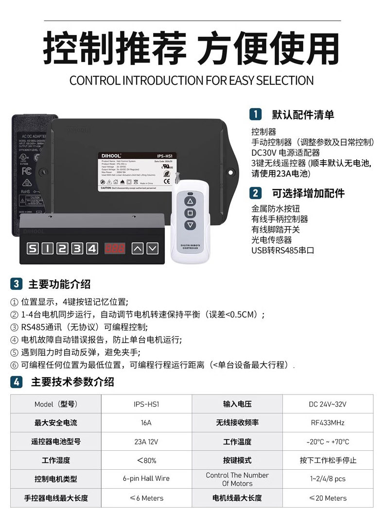 直流電動プッシュロッド正反転遅延過電流保護PLCプログラミング485通信プッシュロッドコントローラ