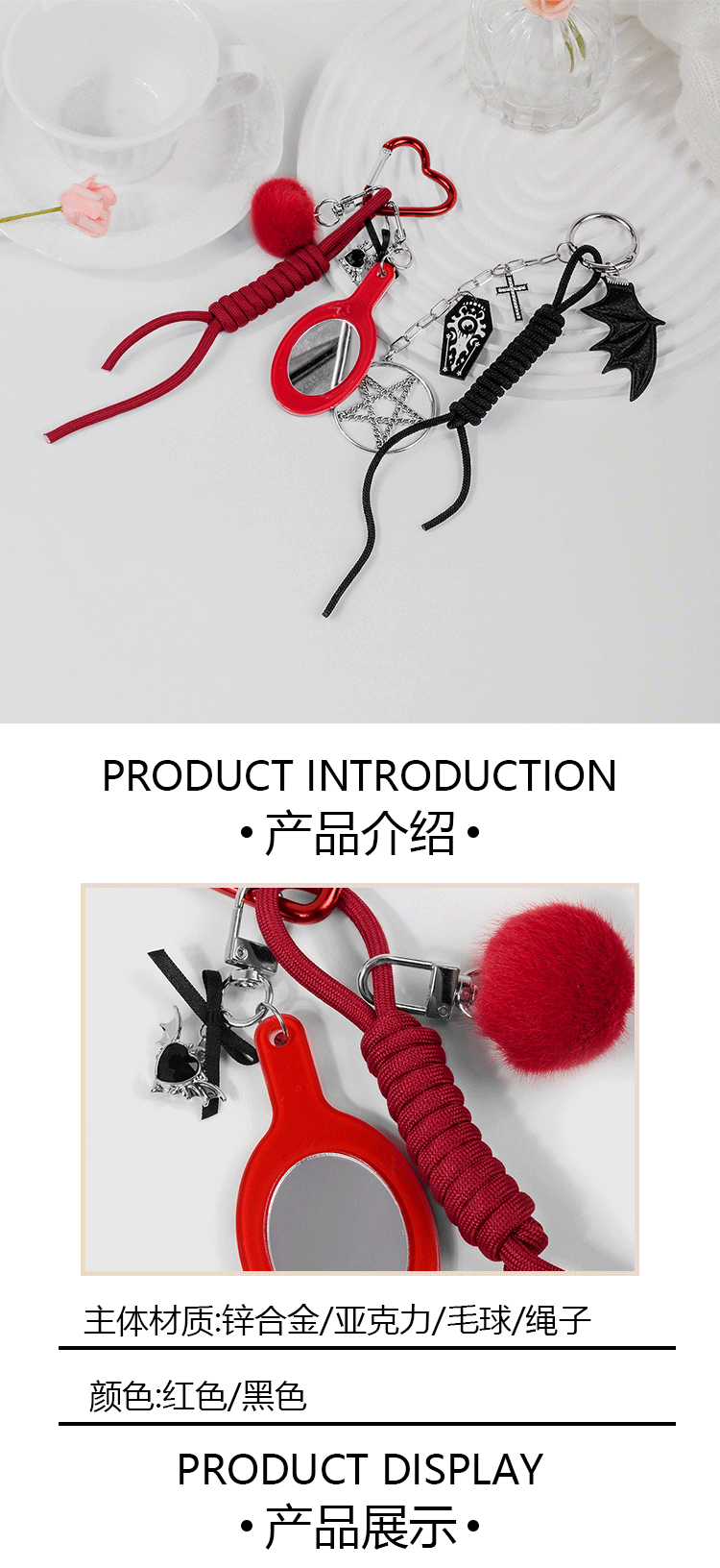 クロスボーダー爆金ins甘美クールファッション黒翼クロス星毛玉鏡DIYキーホルダー