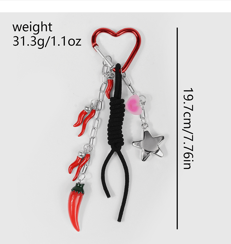 クロスボーダーの人気モデルのファッショントレンド銀色の立体的な愛の星のシミュレーション唐辛子はひものキーホルダーを調節できます。