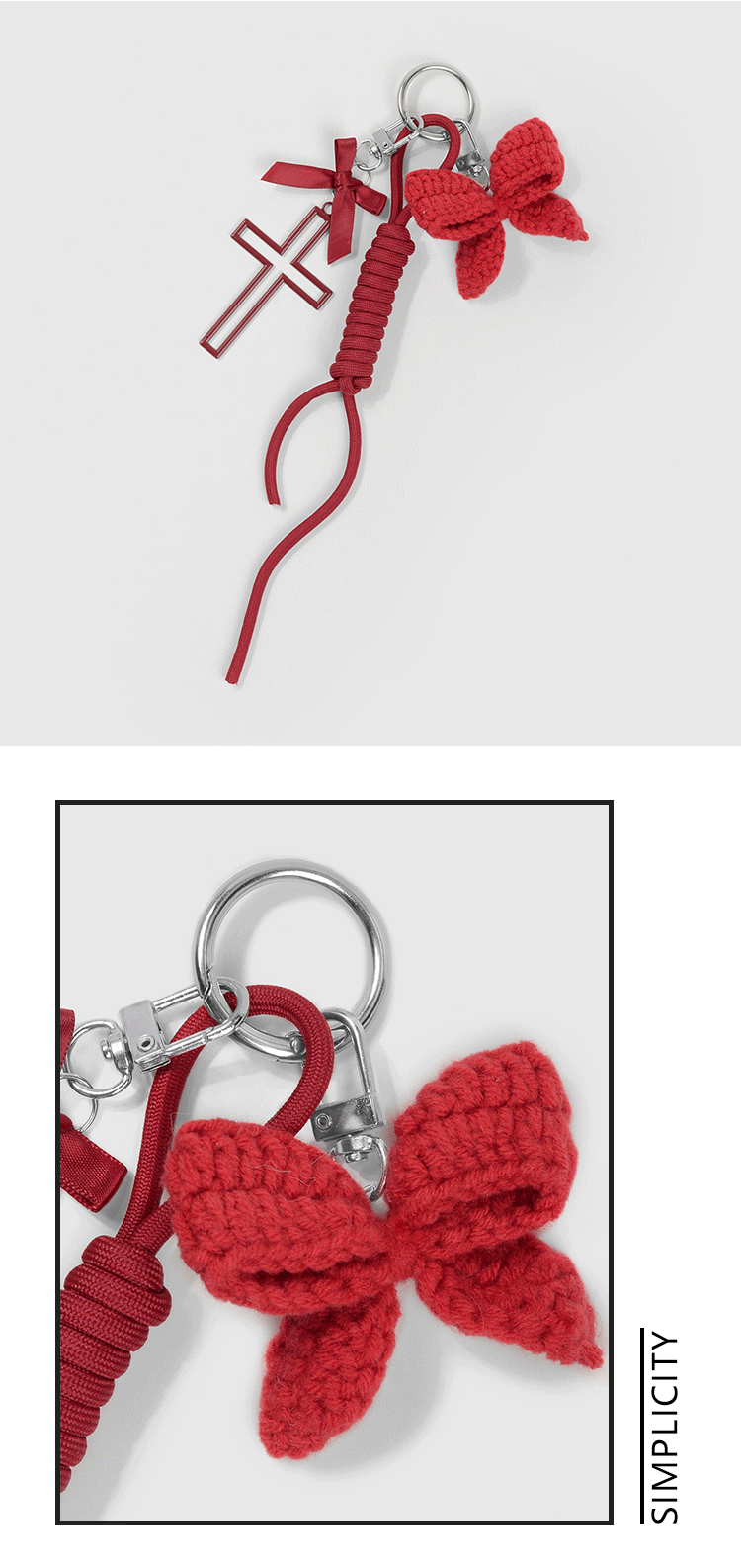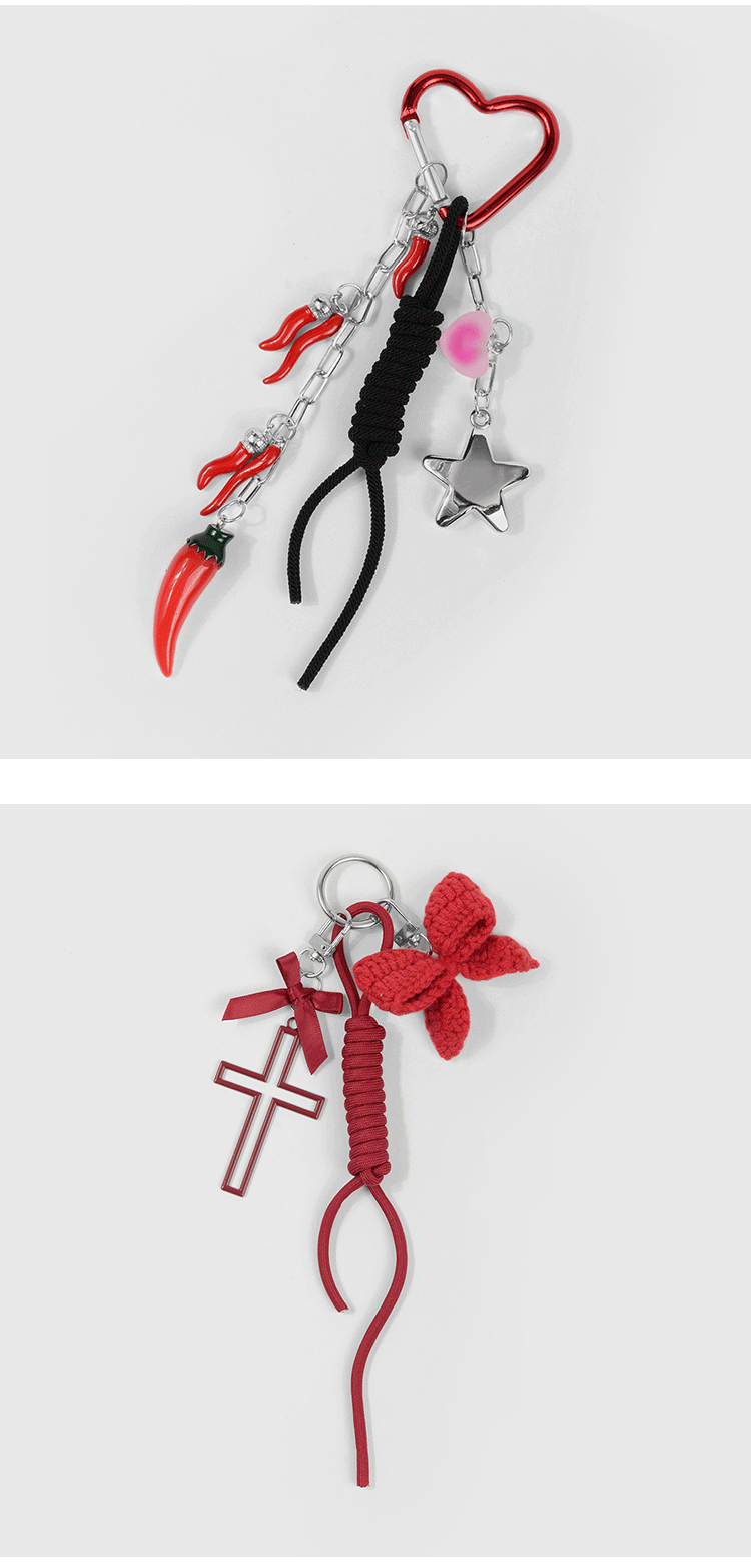 国境を越えて起爆したins韓系甘いファッション赤い鉤織蝶ネクタイは唐辛子星DIYキーホルダーをシミュレートした