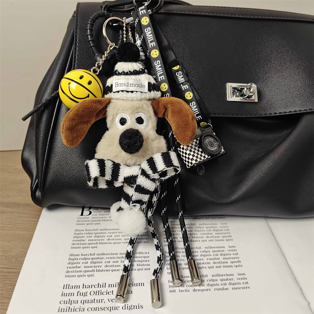 かわいいマフラーの子犬のぬいぐるみの掛け飾りの笑顔のボールのカメラのキーホルダー