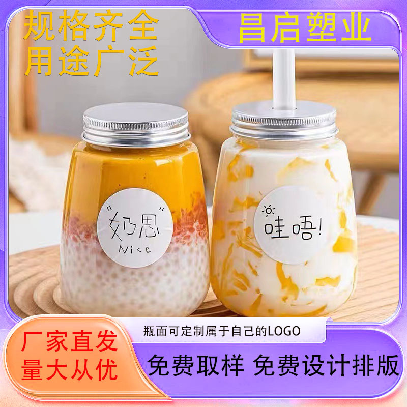 ミルクティー瓶プラスチック透明食品級蓋付きpet創意フラットラウンド包装空ジュース使い捨て飲料瓶