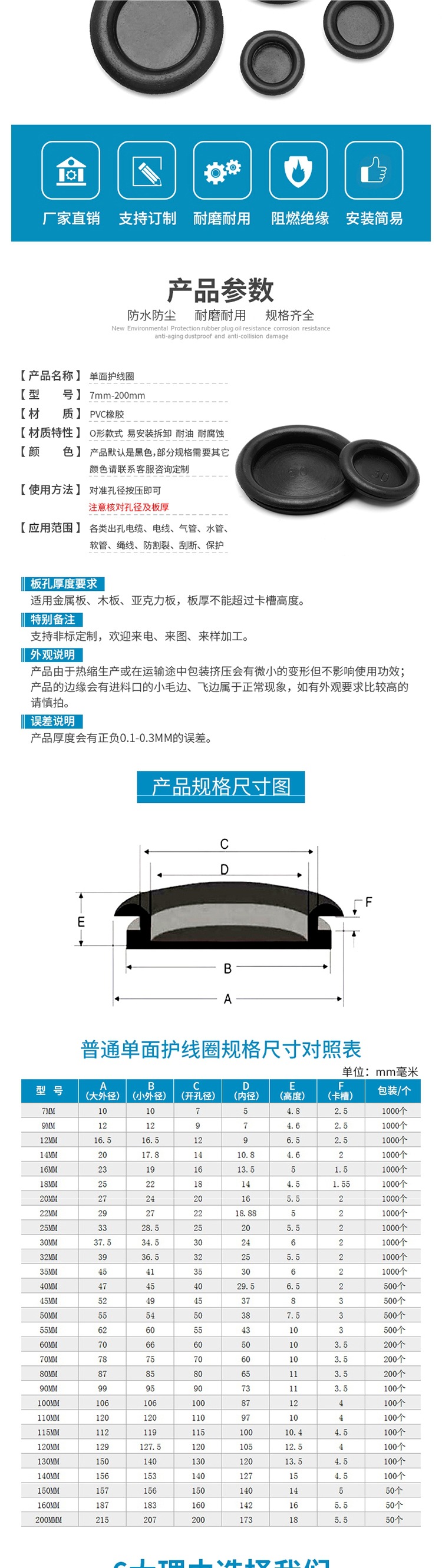 仕様とモデル 普通片開き7mm(100枚入),普通片開き12mm(100枚入),普通片開き14mm(100枚入),普通片開き16mm(100枚入),普通片開き18mm(100枚入),普通片開き20mm(100枚入),普通片開き 22mm(100枚入),普通片開き25mm(100枚入),普通片開き30mm(100枚入),普通片開き32mm(100枚入),普通片開き35mm(100枚入),普通片開き 40mm(100枚入),普通片開き45mm(50枚入),普通片開き 50mm(50枚入),普通片開き55mm(50枚入),普通片開き 60mm(50枚入),普通片面開口65mm(50枚入),普通片開き 70mm(50枚入),普通片面開き75mm(50枚入),普通片開き80mm(50枚入),普通片開き90mm(50枚入),普通片開き100mm(50枚入),普通片開き110mm(50枚入),普通片開き115mm(50枚入),普通片開き 120mm(50枚入),普通片面開口130mm(10本入),普通片開き 140mm(10本入),普通片開き150mm(10枚入),普通片開き 160mm(10本入),普通片面開き200mm(5個入)