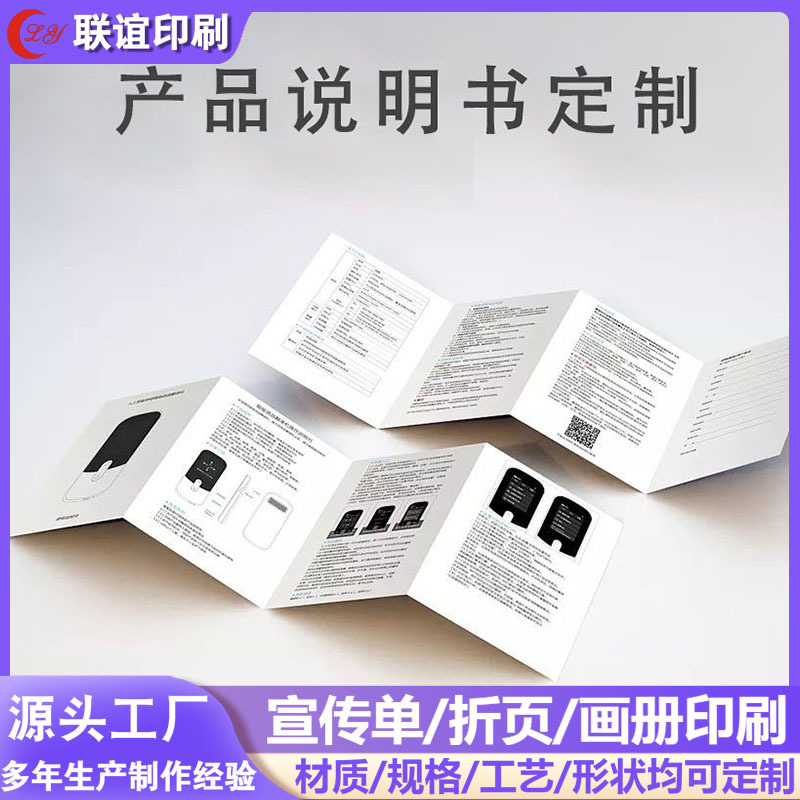 製品折りたたみパンフレット、説明書、広告、展示会、ビジネスブック、冊子、チラシ、白黒折りたたみ印刷、企業製品