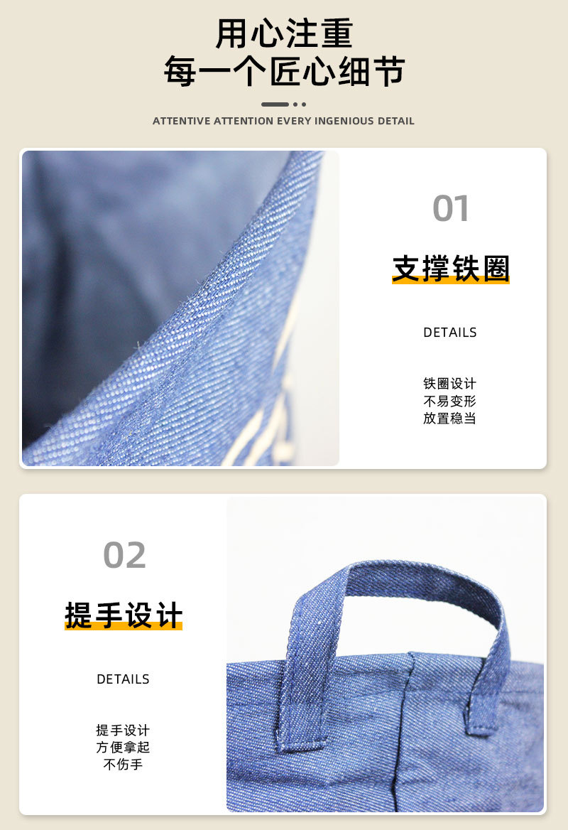 折りたたみ式大容量のデニム製ランドリーバスケット、浴室用衣類収納、汚れた服の収納バスケット